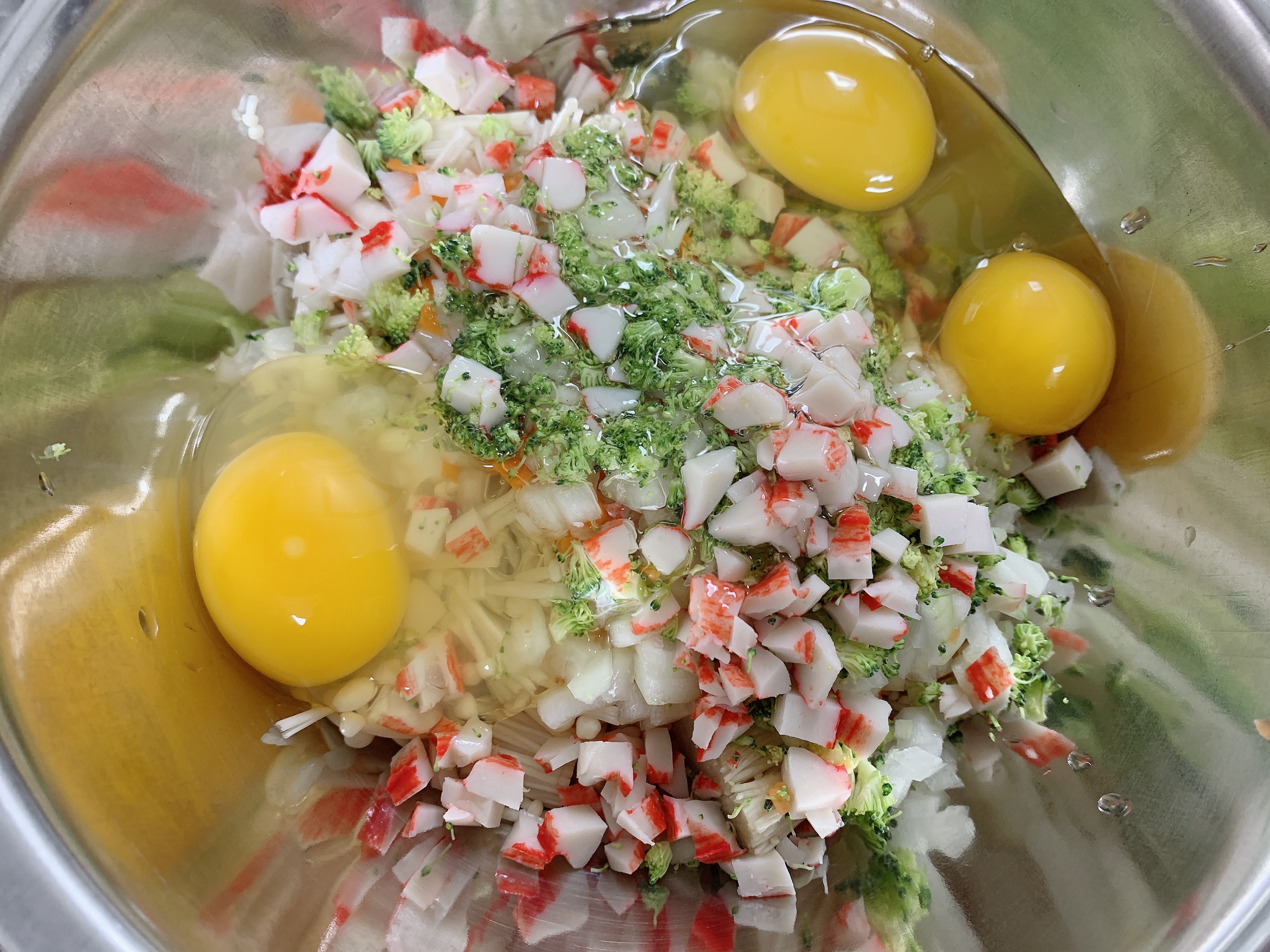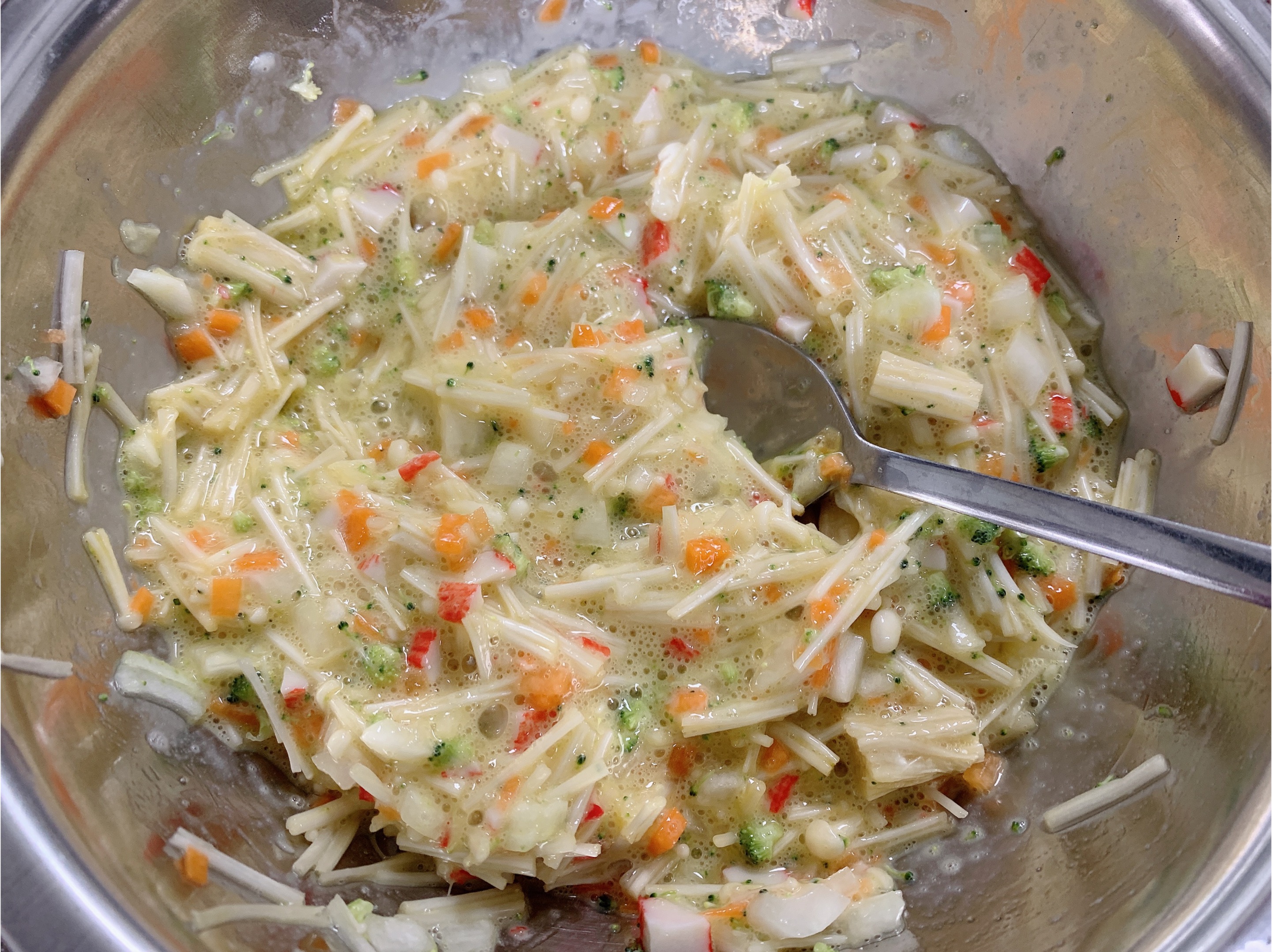 팽이버섯 한줌, 달걀 3개, 당근 조금, 브로콜리 조금,
