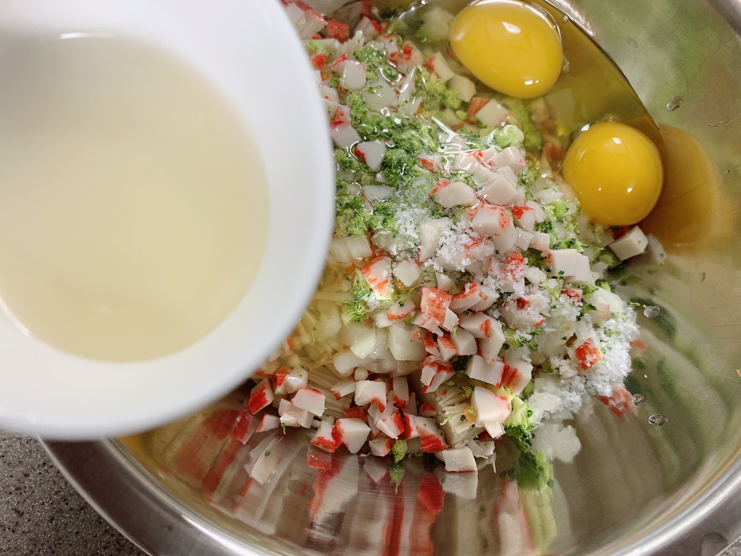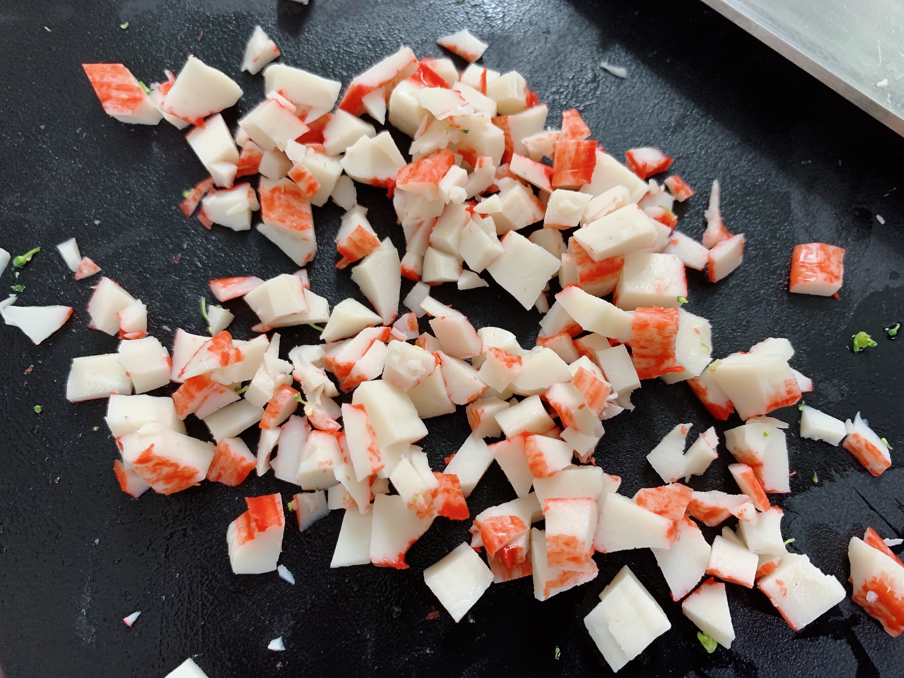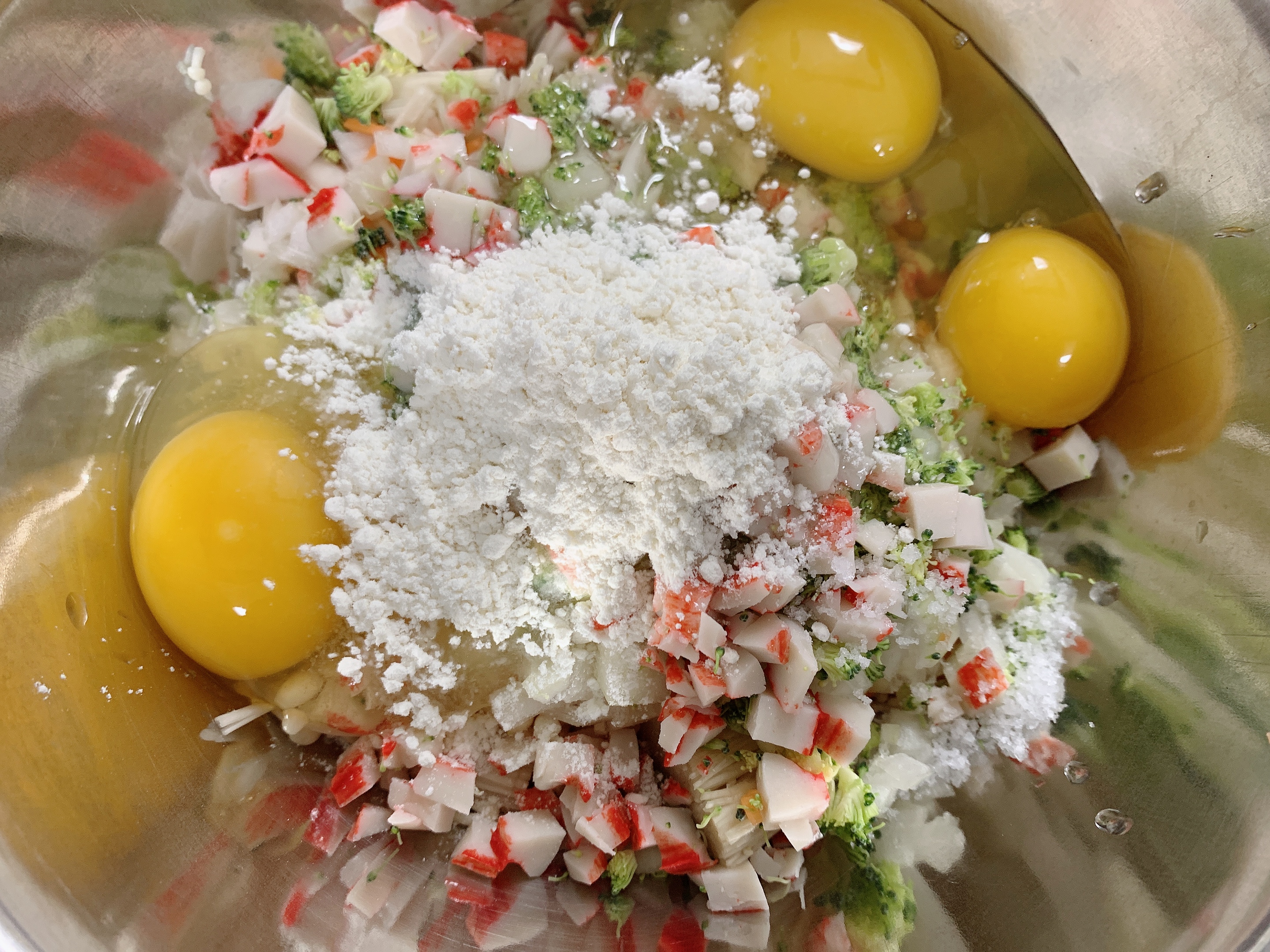 양파 1/4개, 게맛살 1개, 밀가루 1큰술,