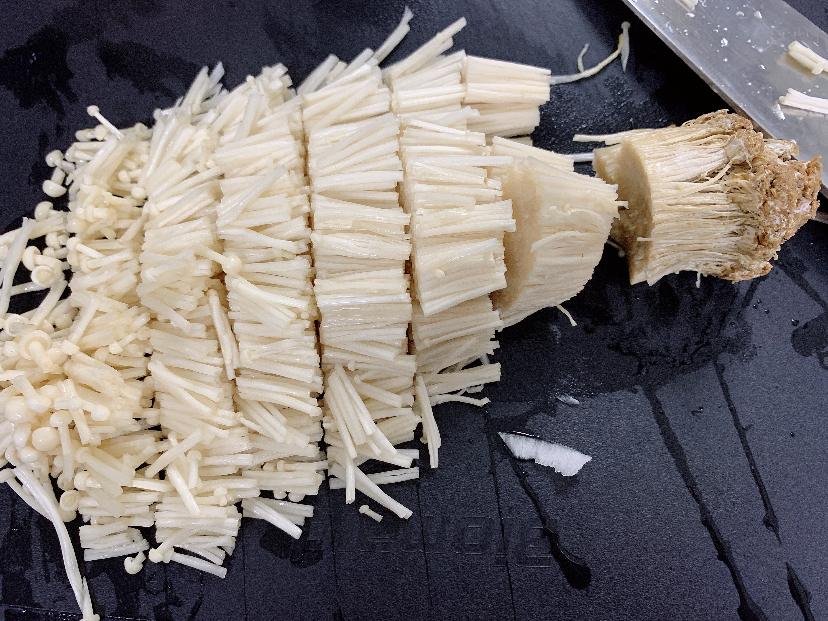 팽이버섯이 잘 풀어지도록 숟가락으로