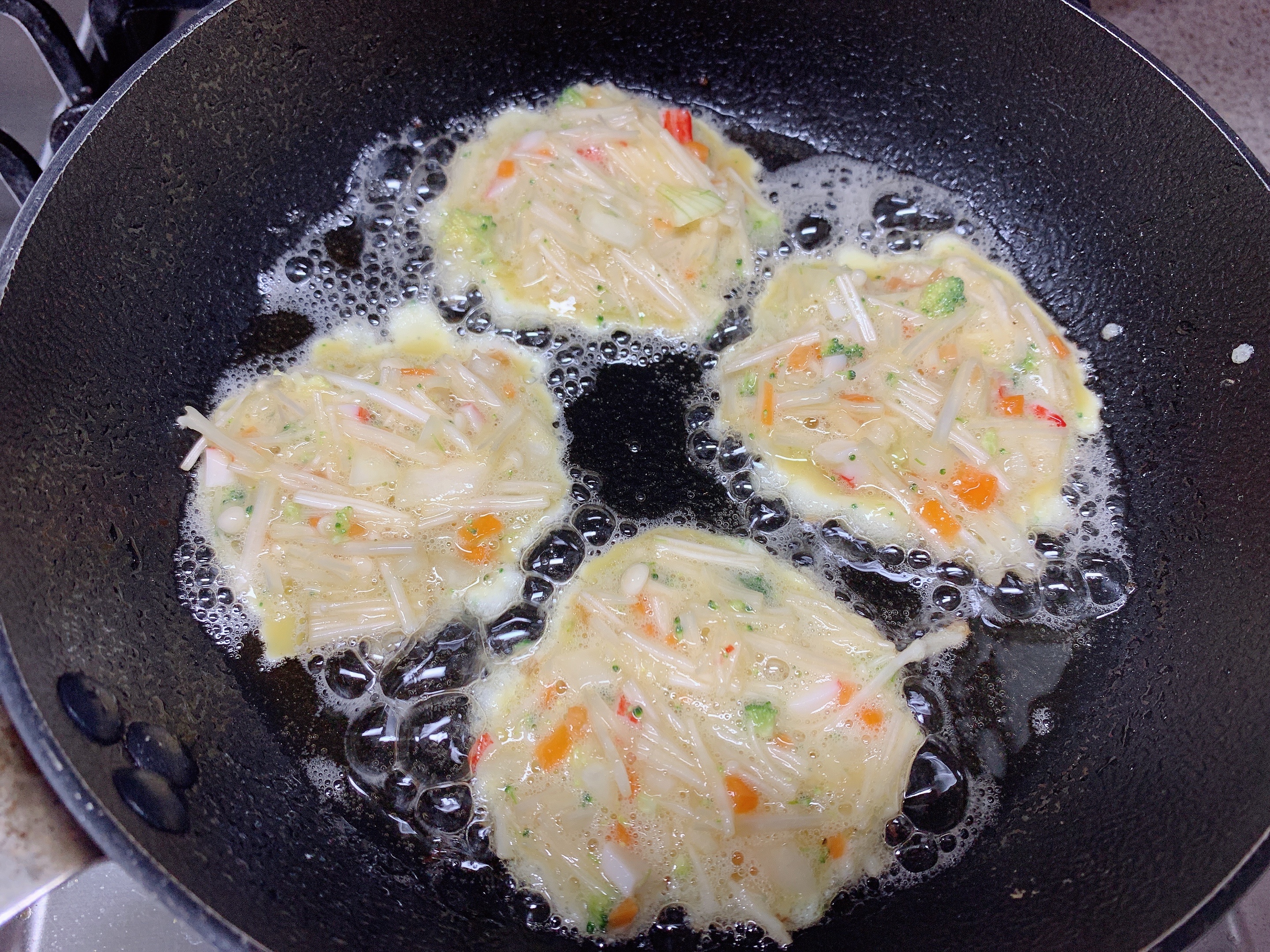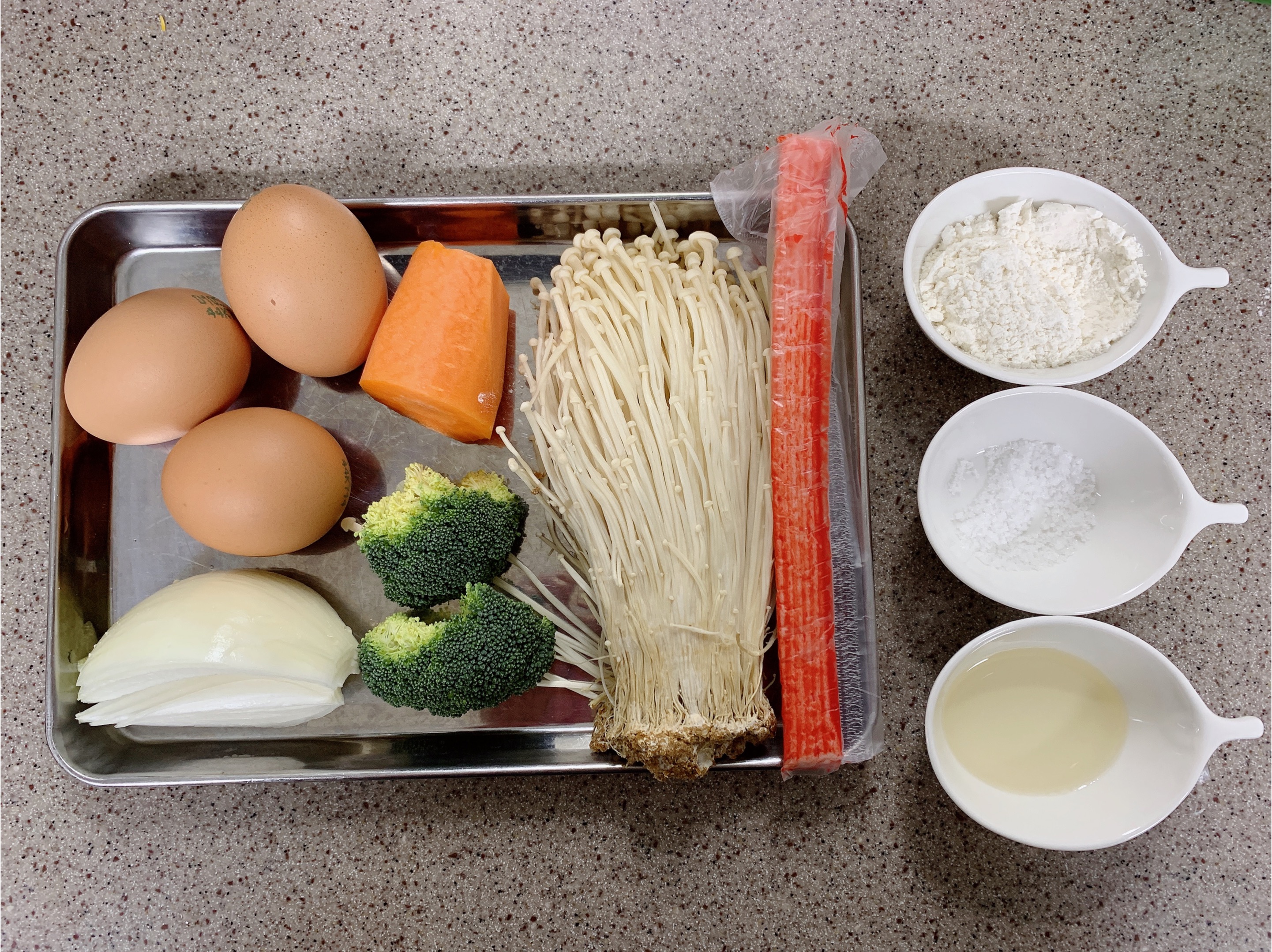 팽이버섯 한줌, 달걀 3개, 당근 조금, 브로콜리 조금,