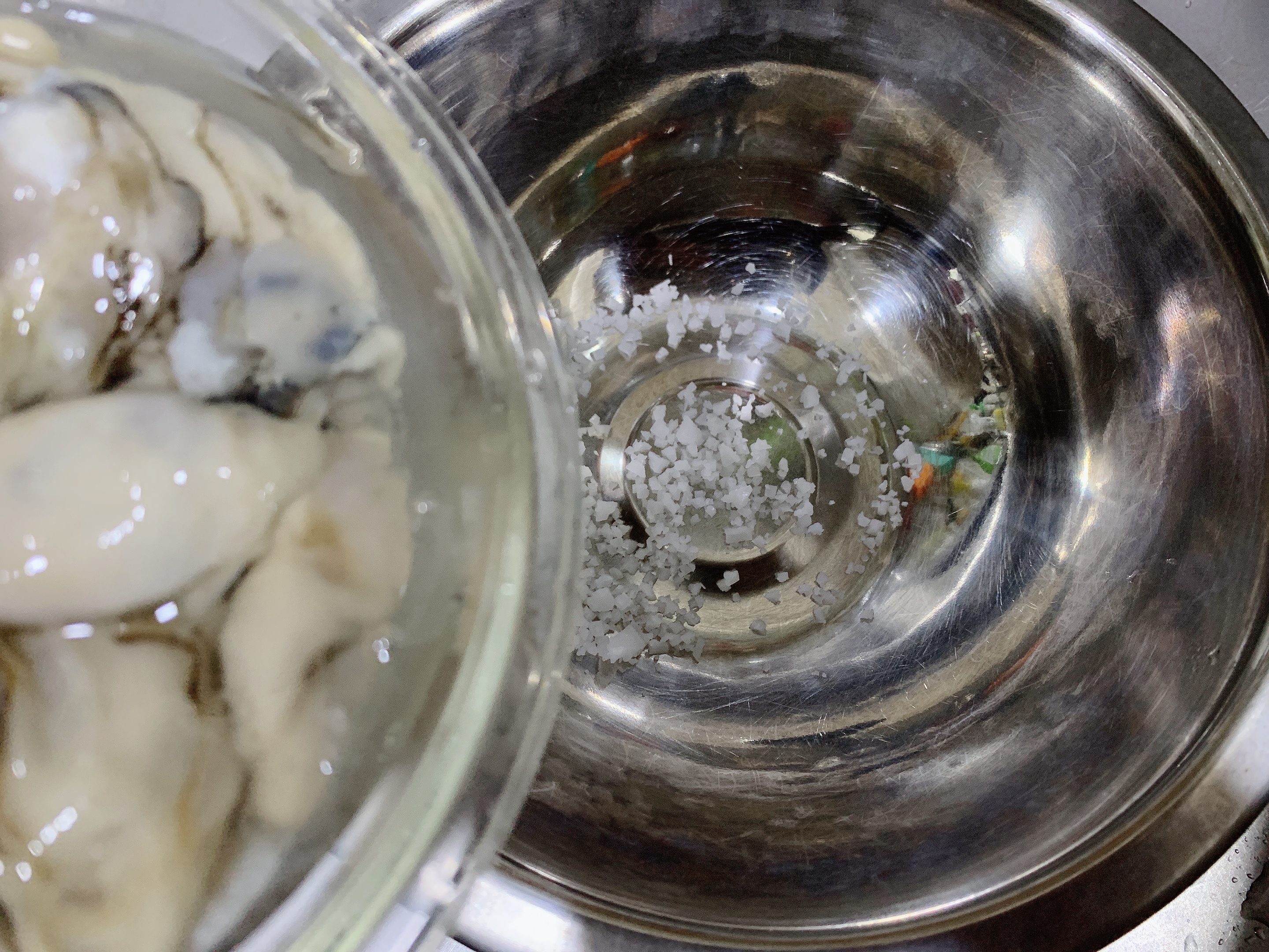 굴은 굵은 소금을 넣은 물에