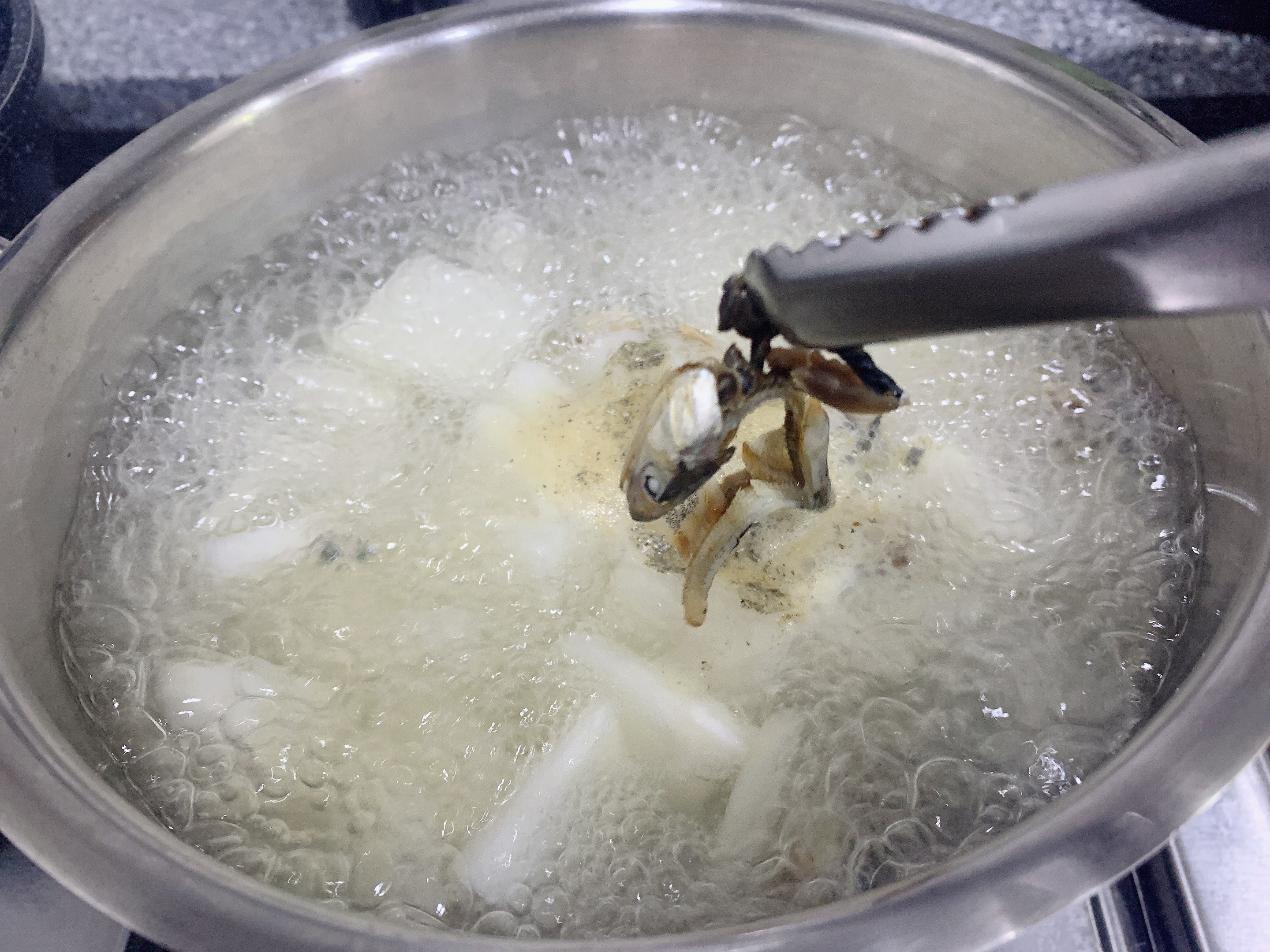멸치는 잠시뒤에 빼주시고요