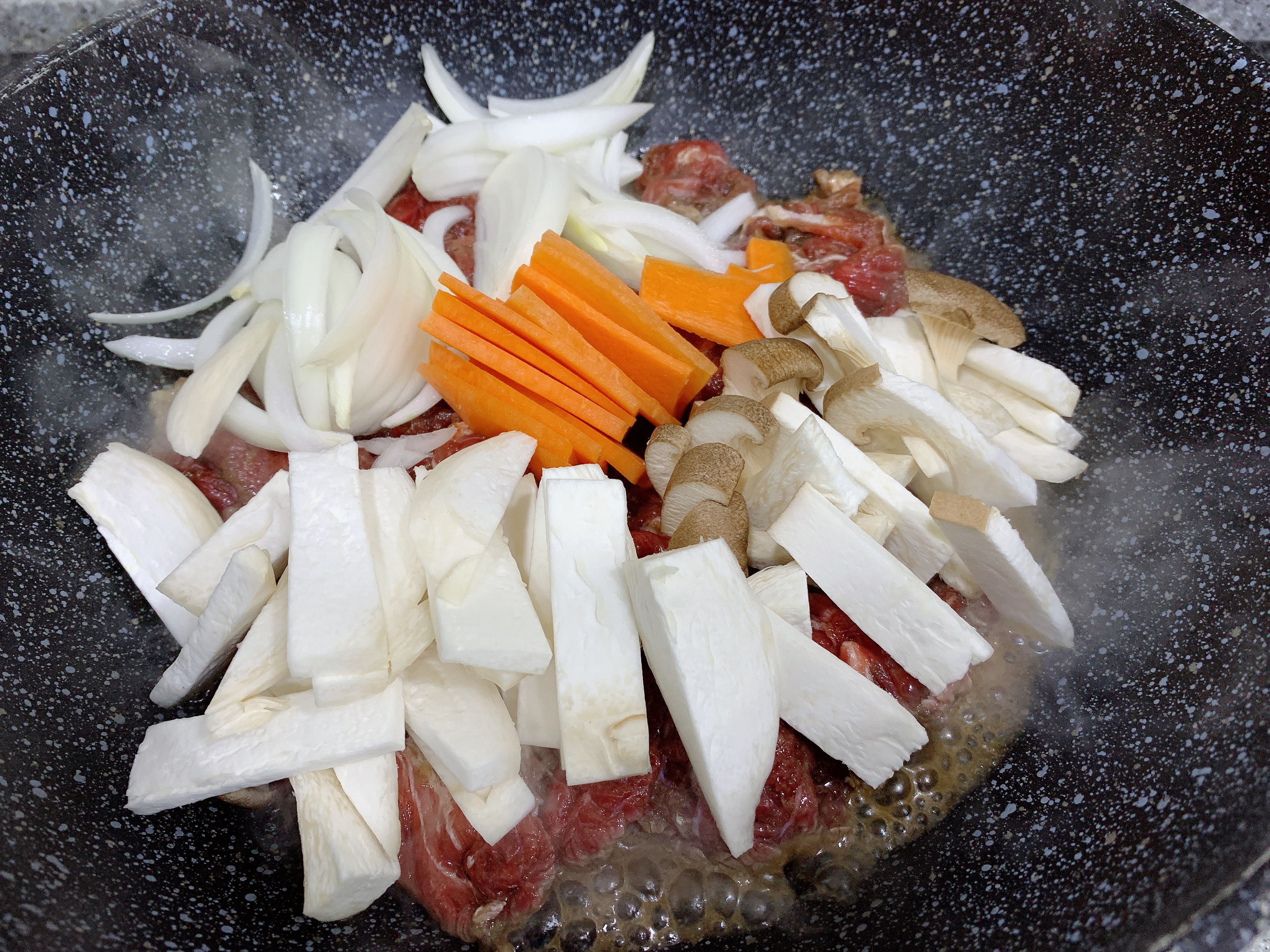 양파, 당근, 버섯도 차례로 넣어주세요