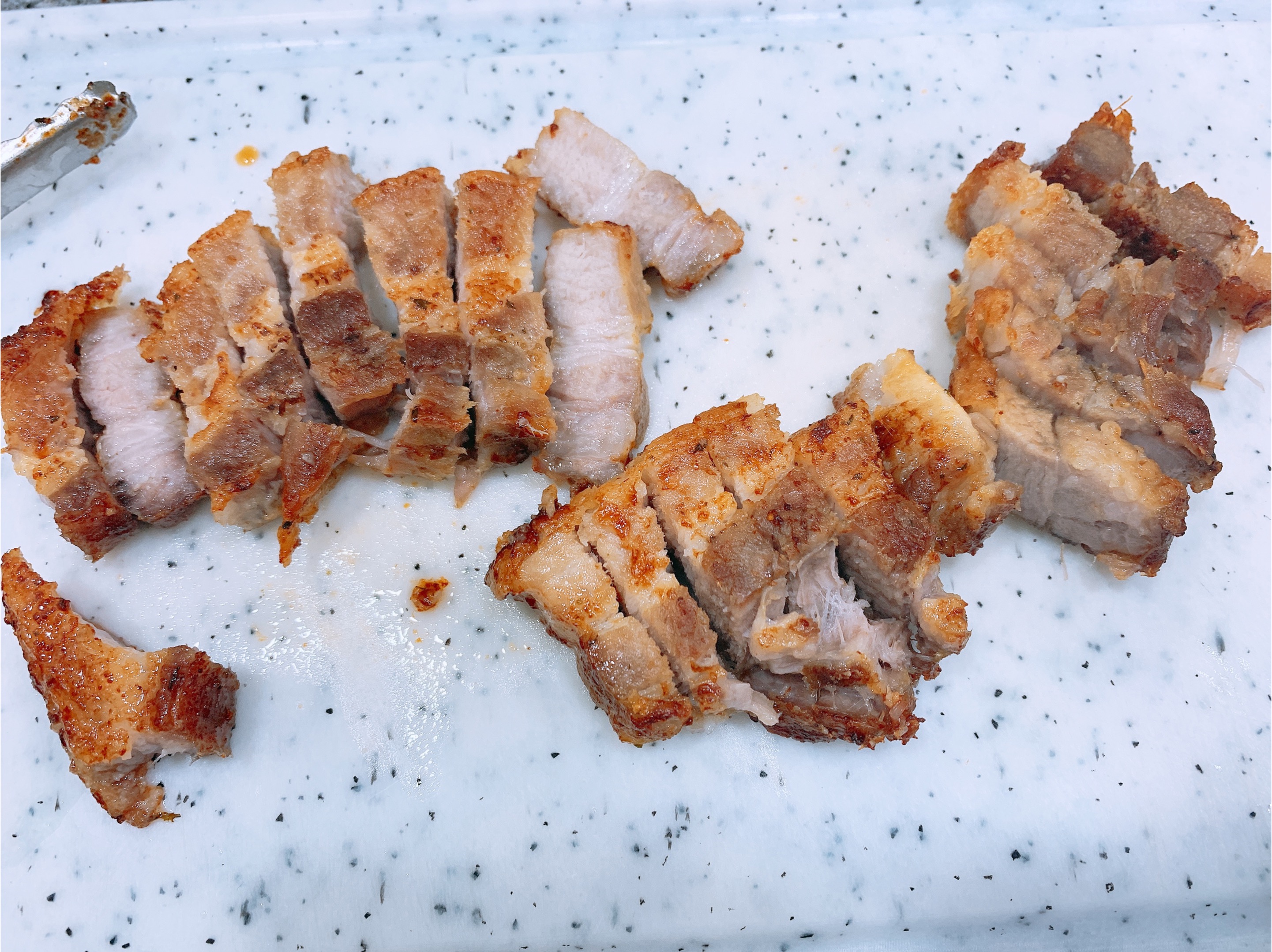 두께가 더 두꺼운 통삼겹은 앞뒤 뿐만아니라