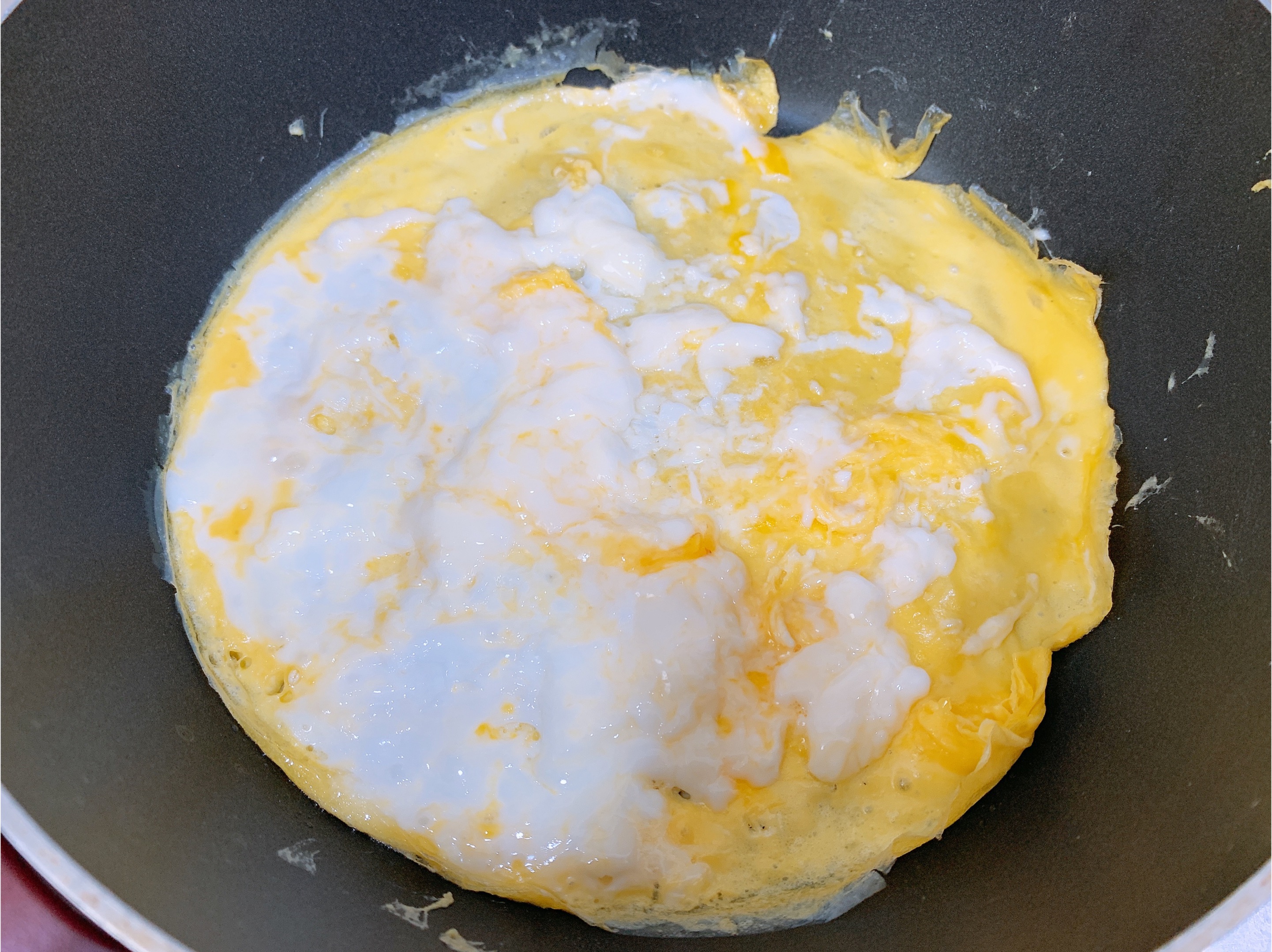 덜 풀어진 달걀을 급하게 했더니 저렇게 나왔지만