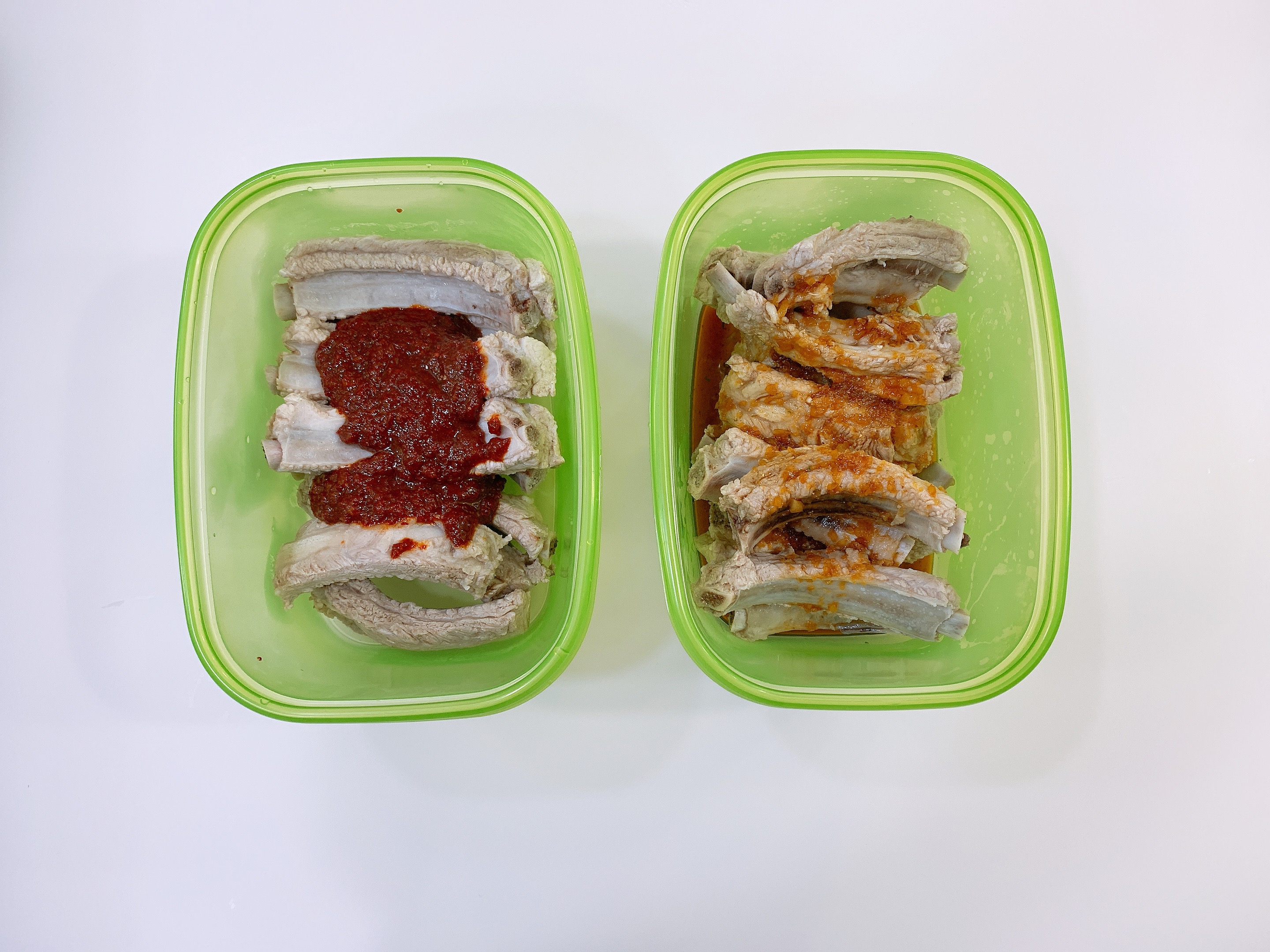 물로 씻은 등갈비는 물기를 빼주시고 식혀주세요