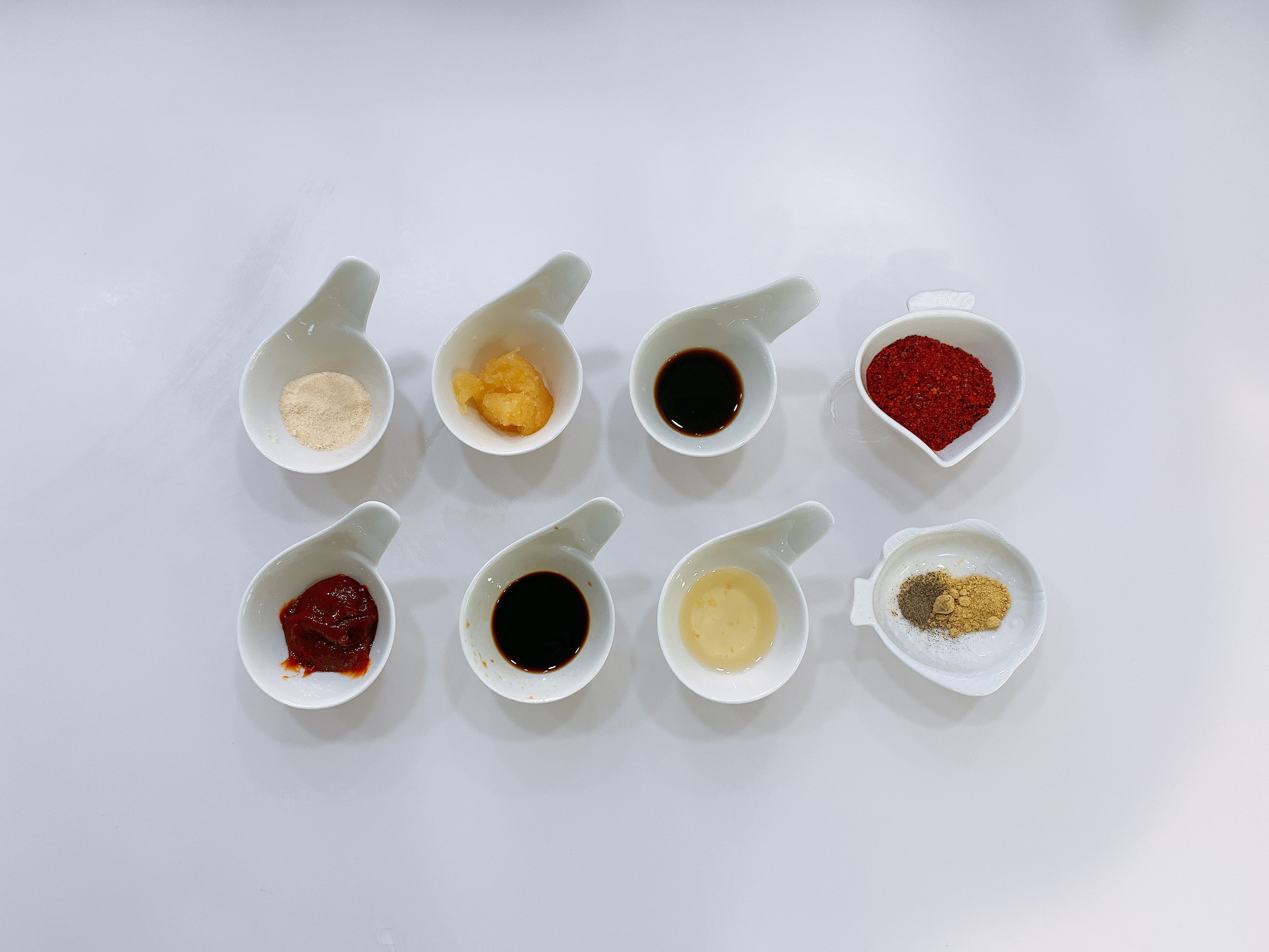 매운양념 : 고추장 1큰술, 고춧가루 2큰술,