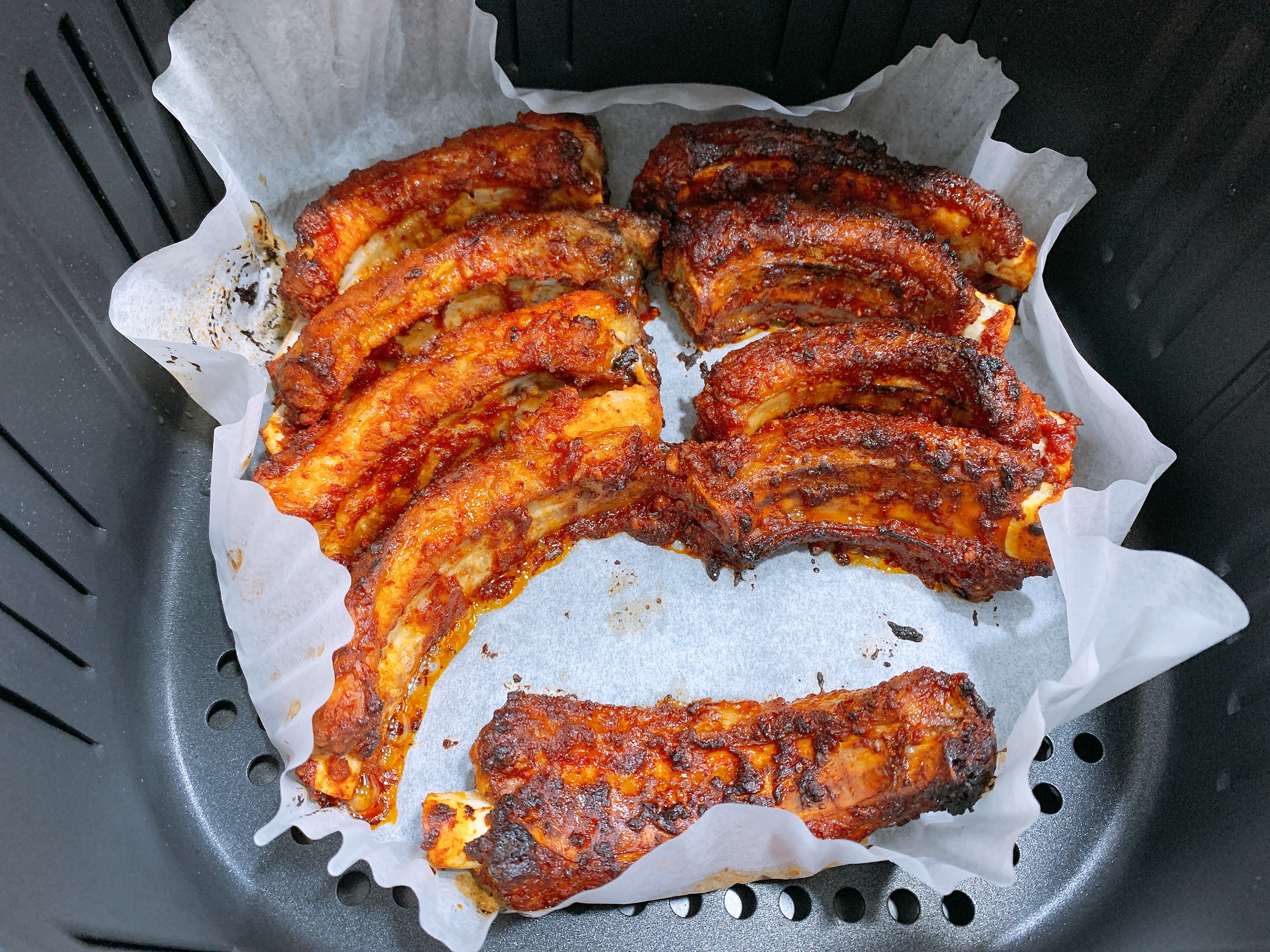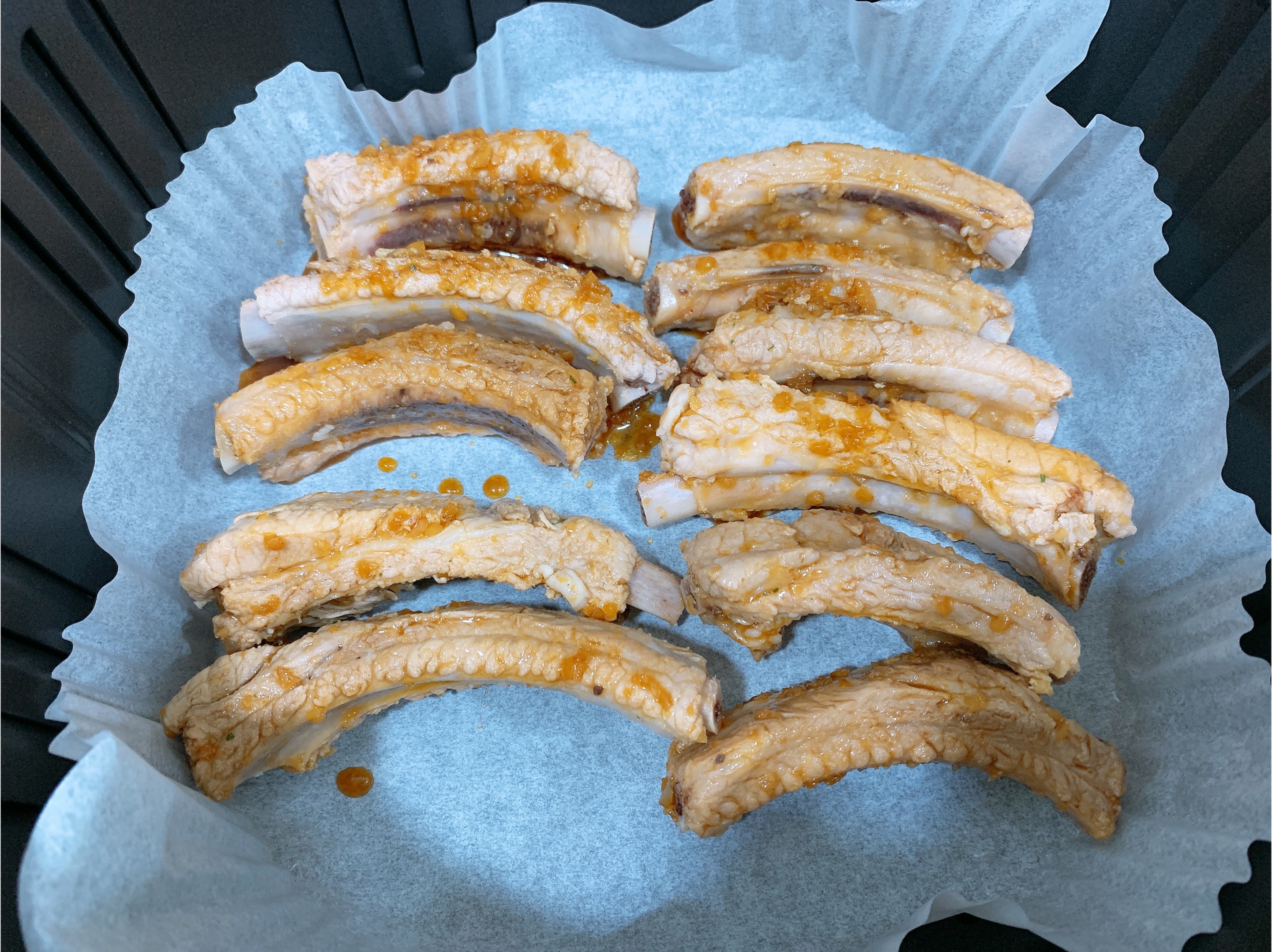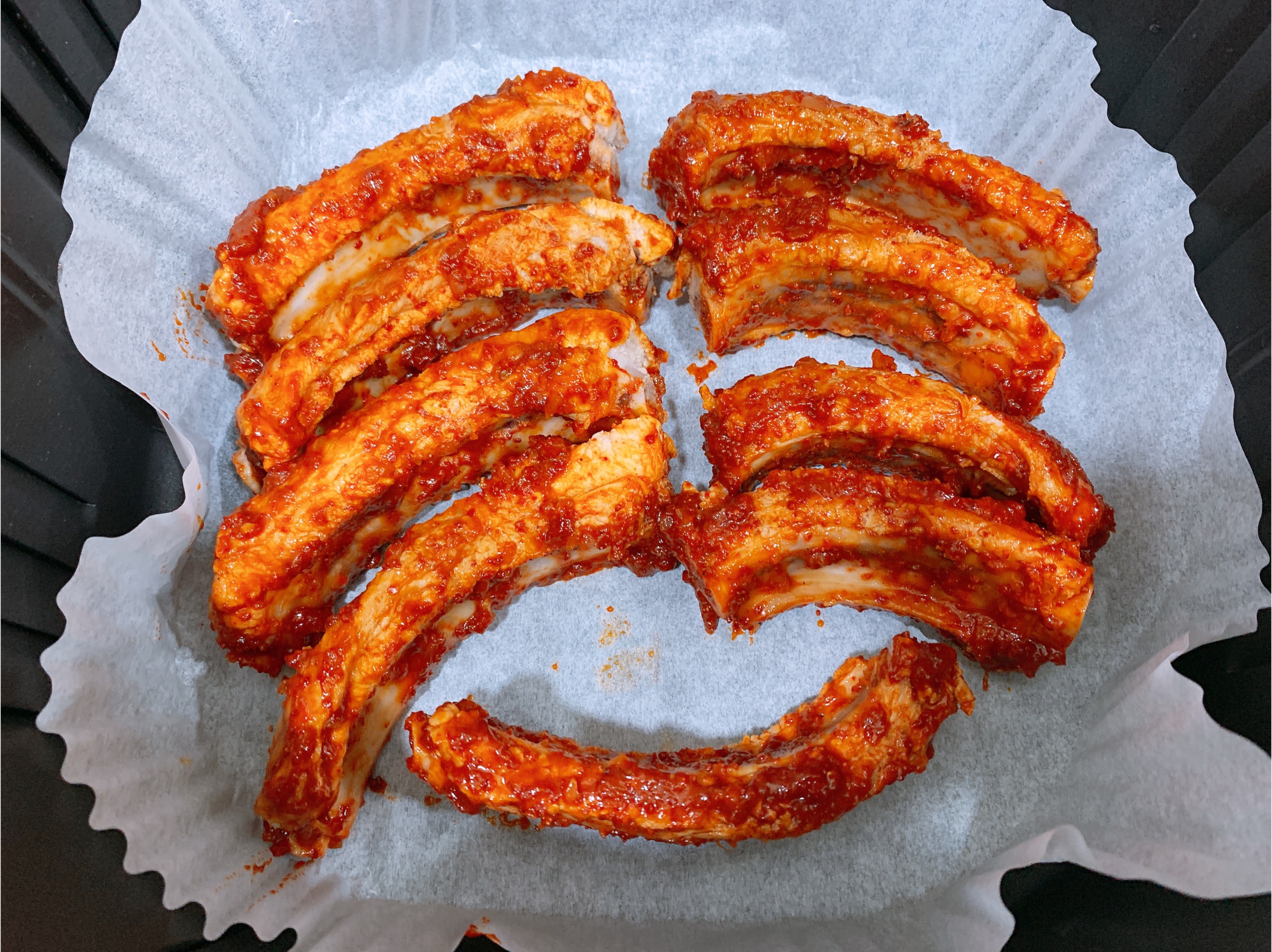 에어프라이어에 간장양념등갈비부터 넣어줍니다