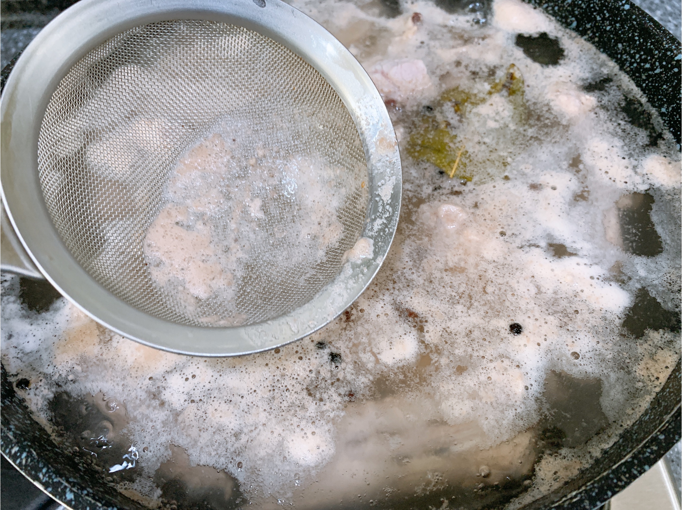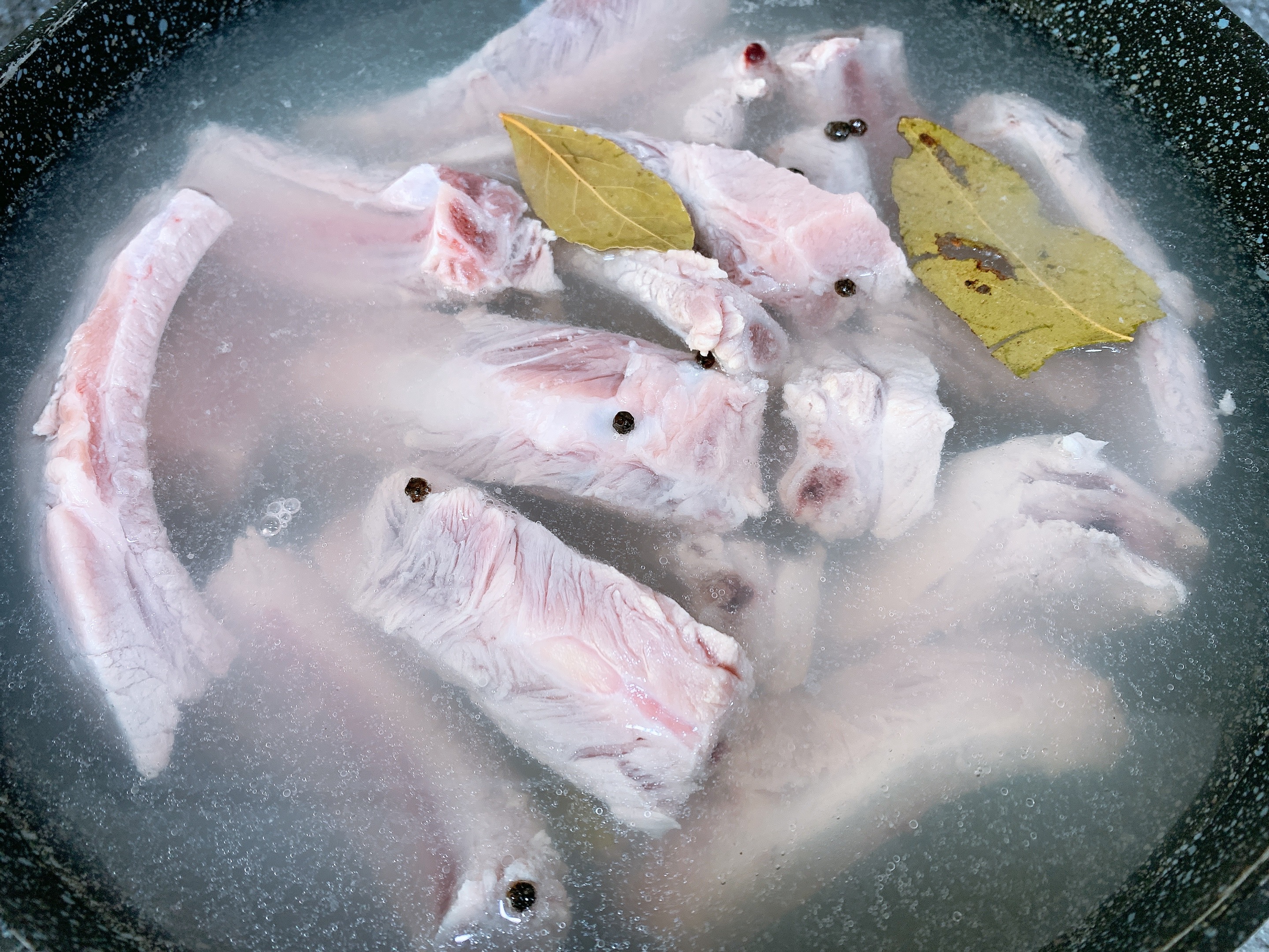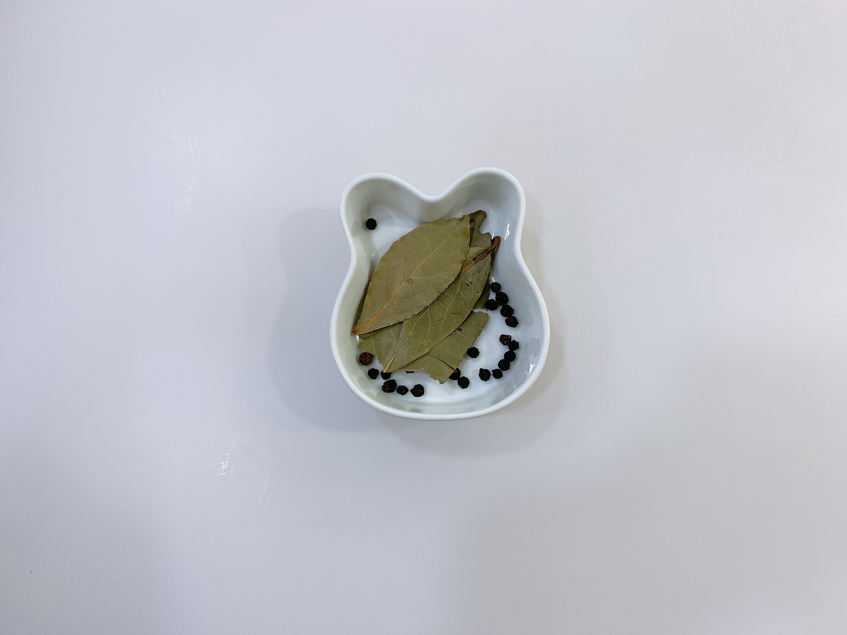 월계수잎과 통후추를 넣고 5분정도 데쳐주세요