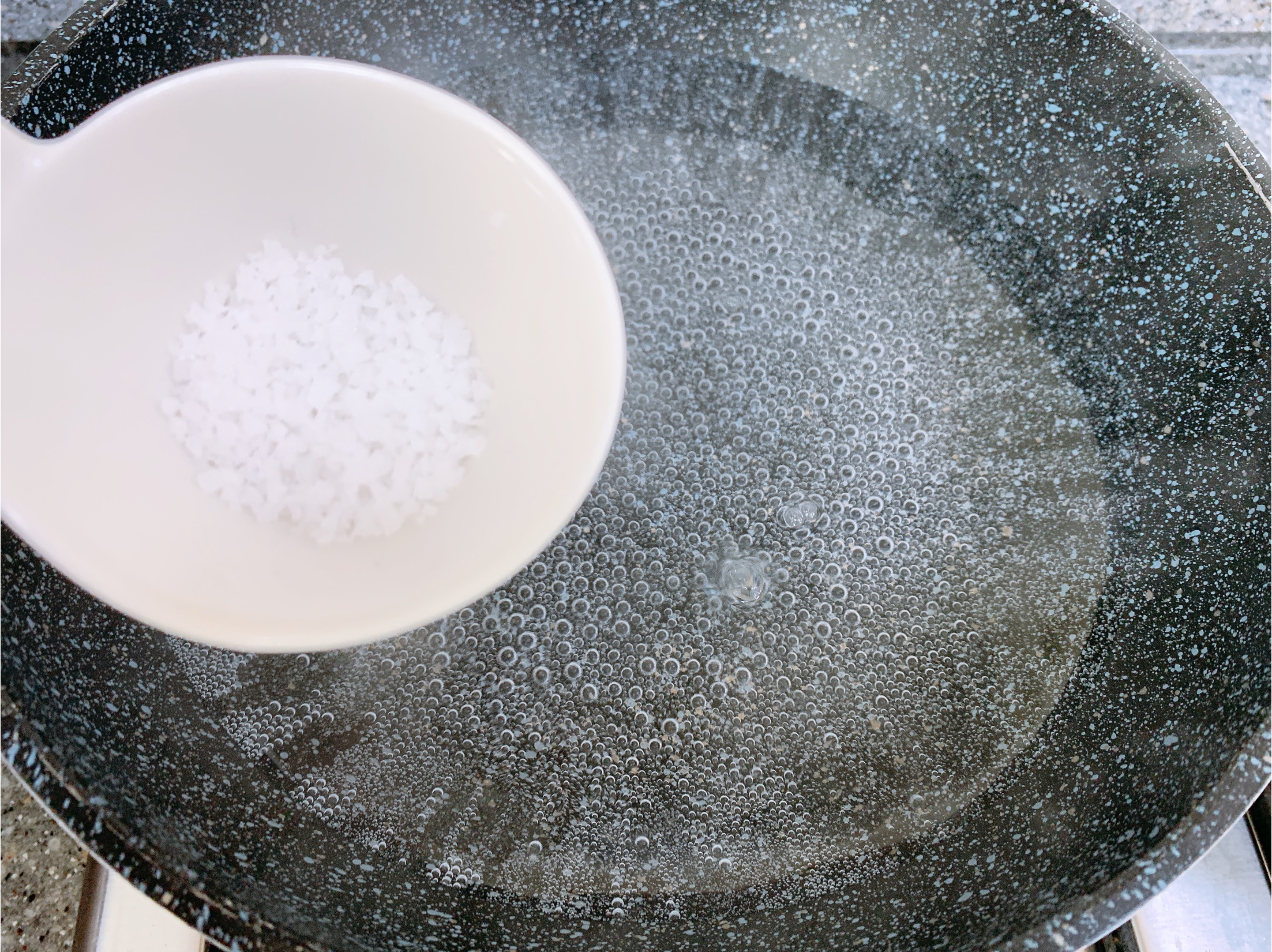 보글보글 끓는물에 굵은소금 1큰술을 넣어주세요