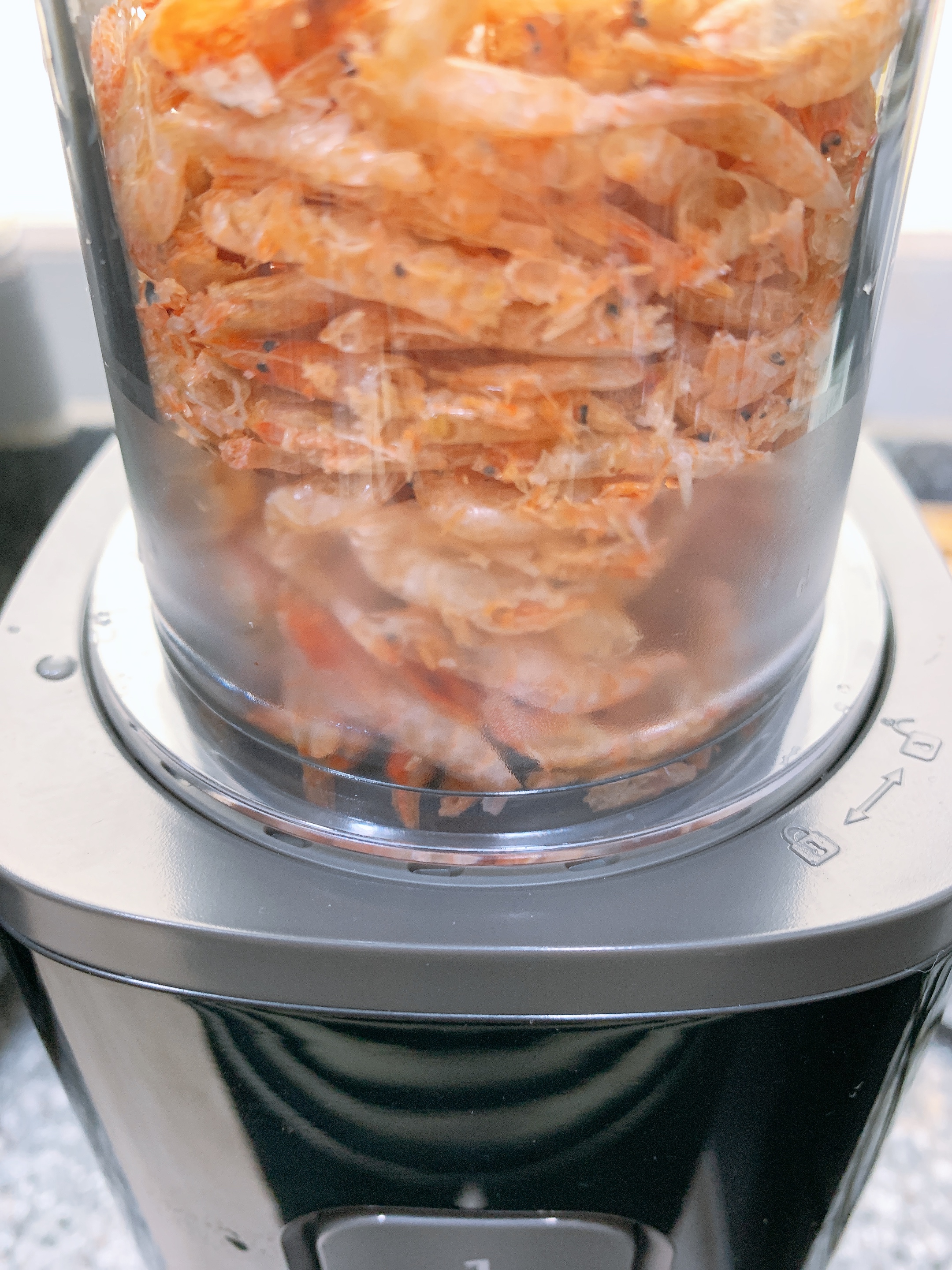 보리새우는 믹서에 곱게 갈아 가루로 만들어서