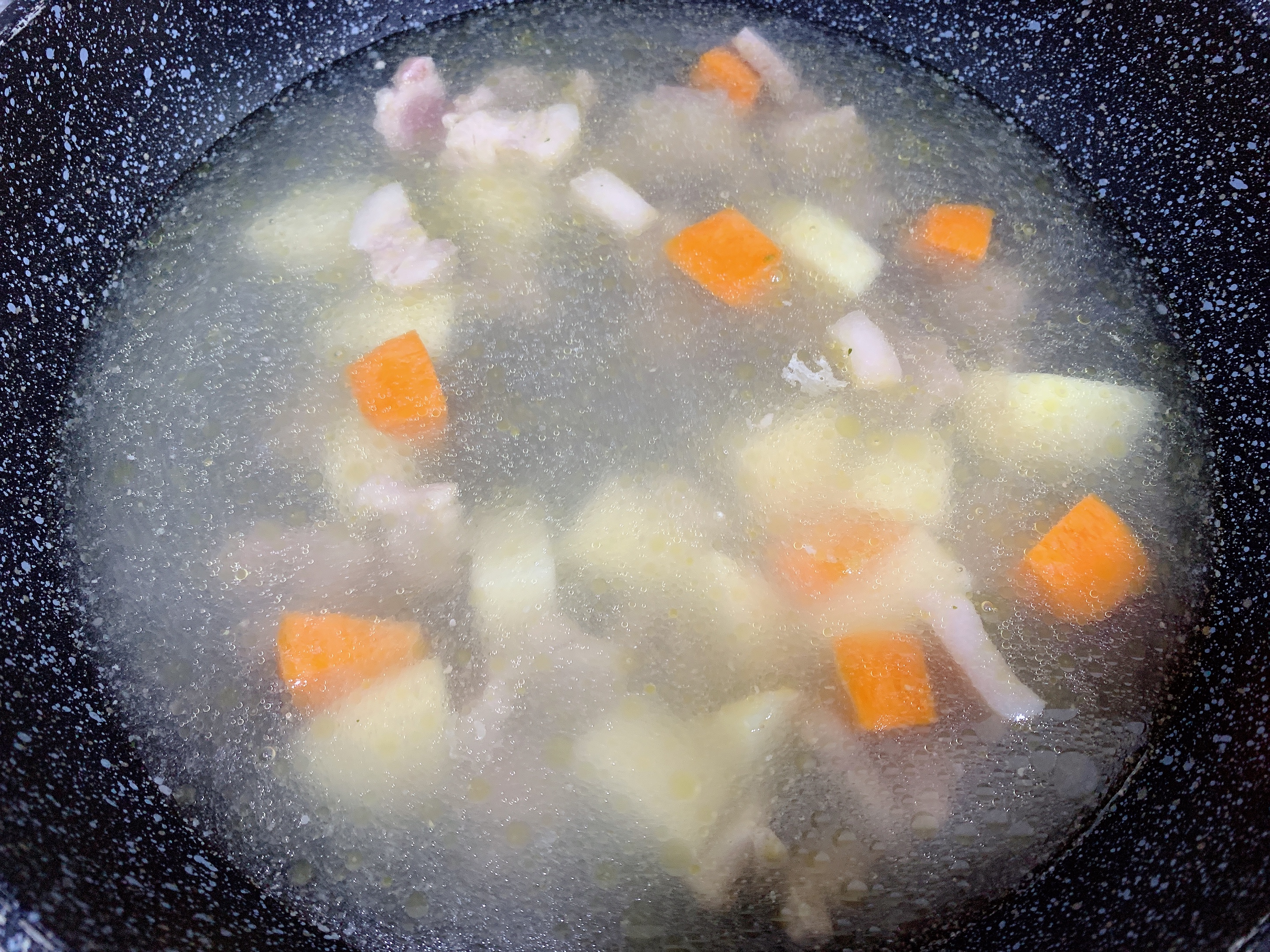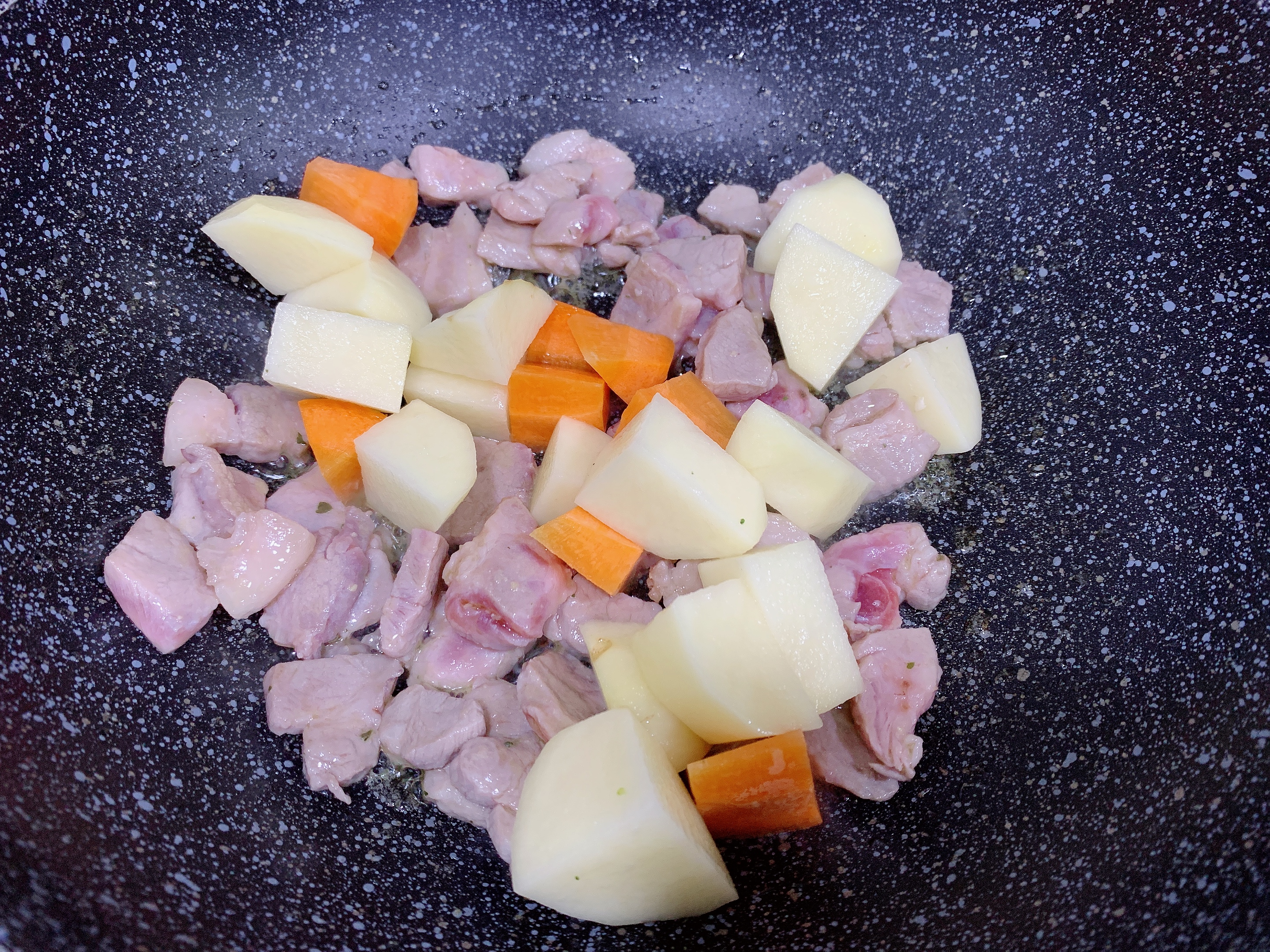 돼지목살 두덩이, 감자 1개, 당근 조금,