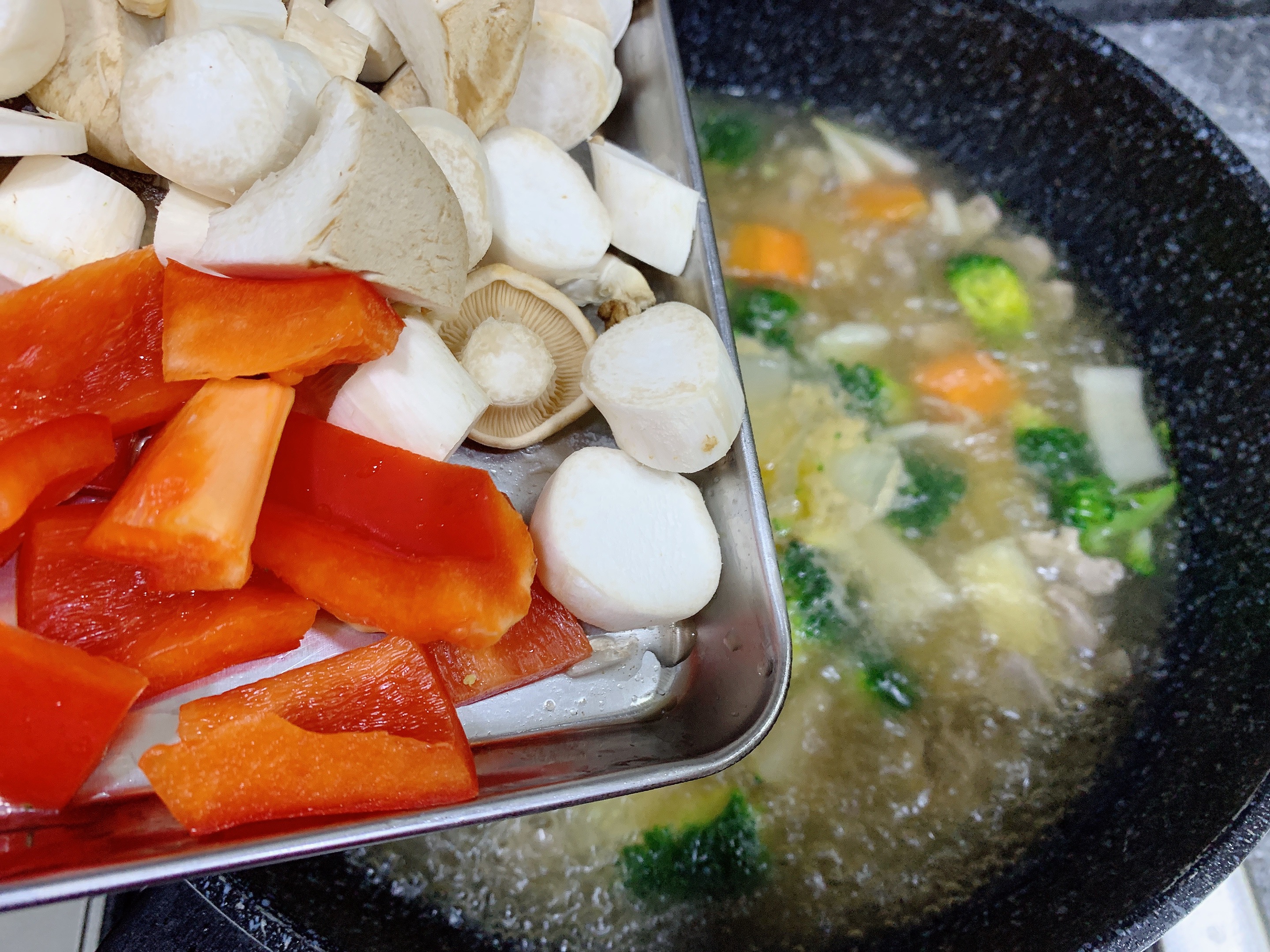파프리카 1/4개, 브로콜리 5송이, 양파 1/4개,