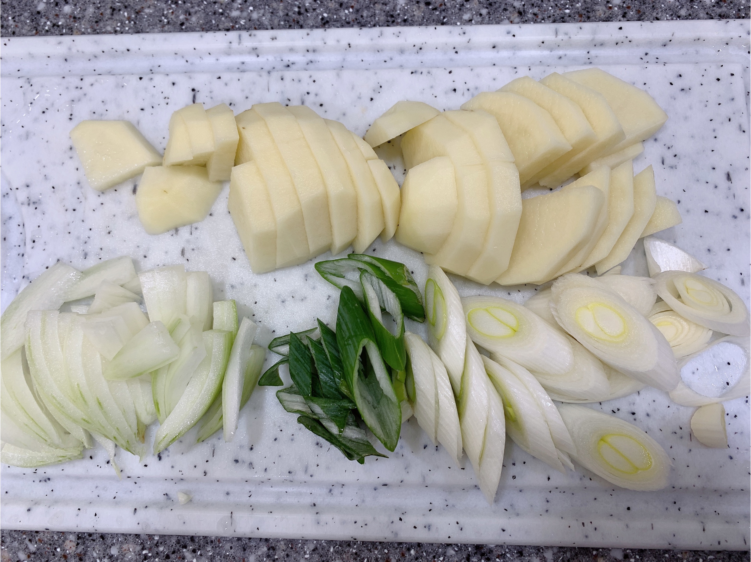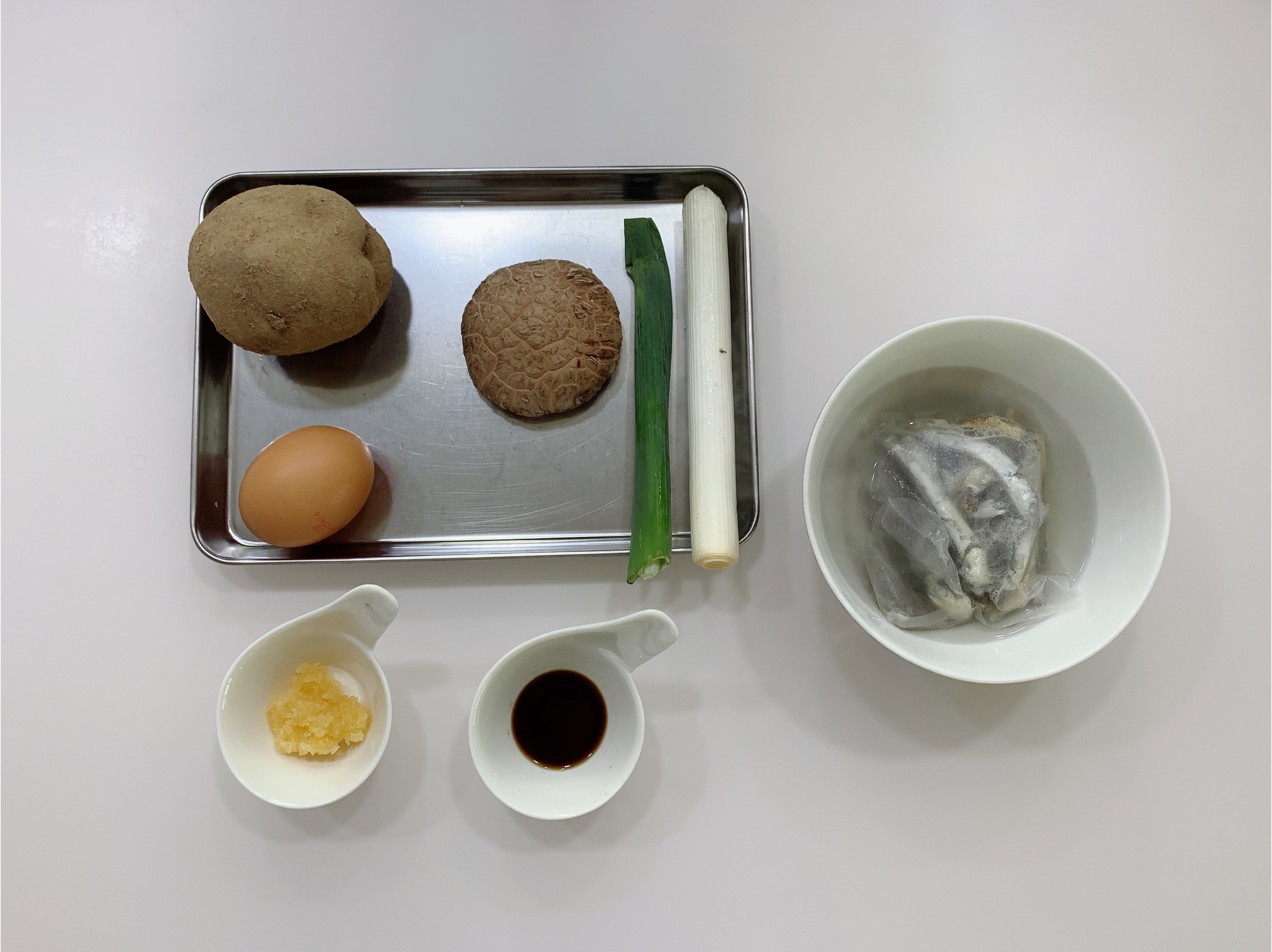 달걀 1개, 감자 큰것 1개, 표고버섯 1개, 대파 1대,