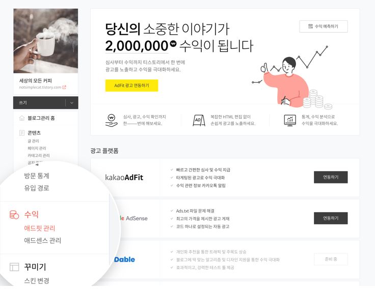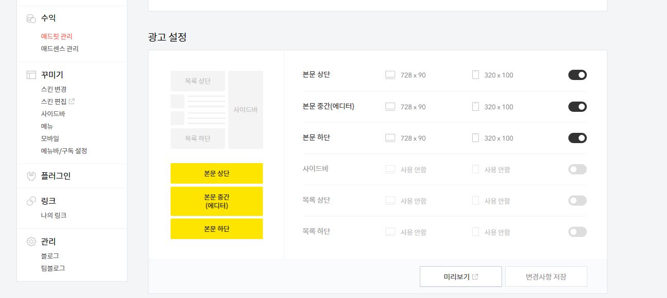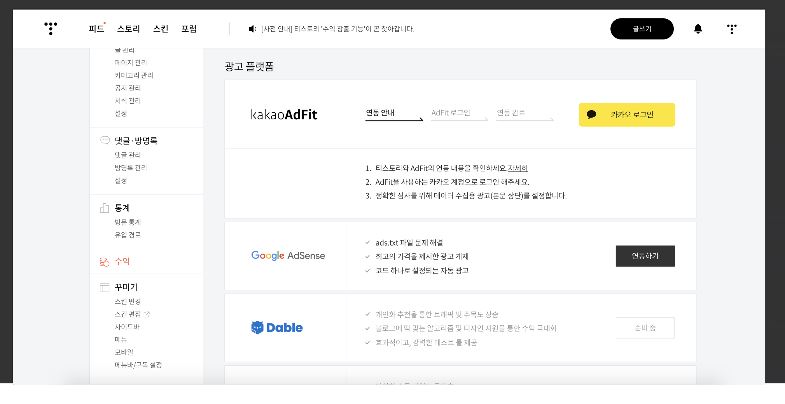 다음 티스토리에는 카카오애드핏과 구글애드센스를