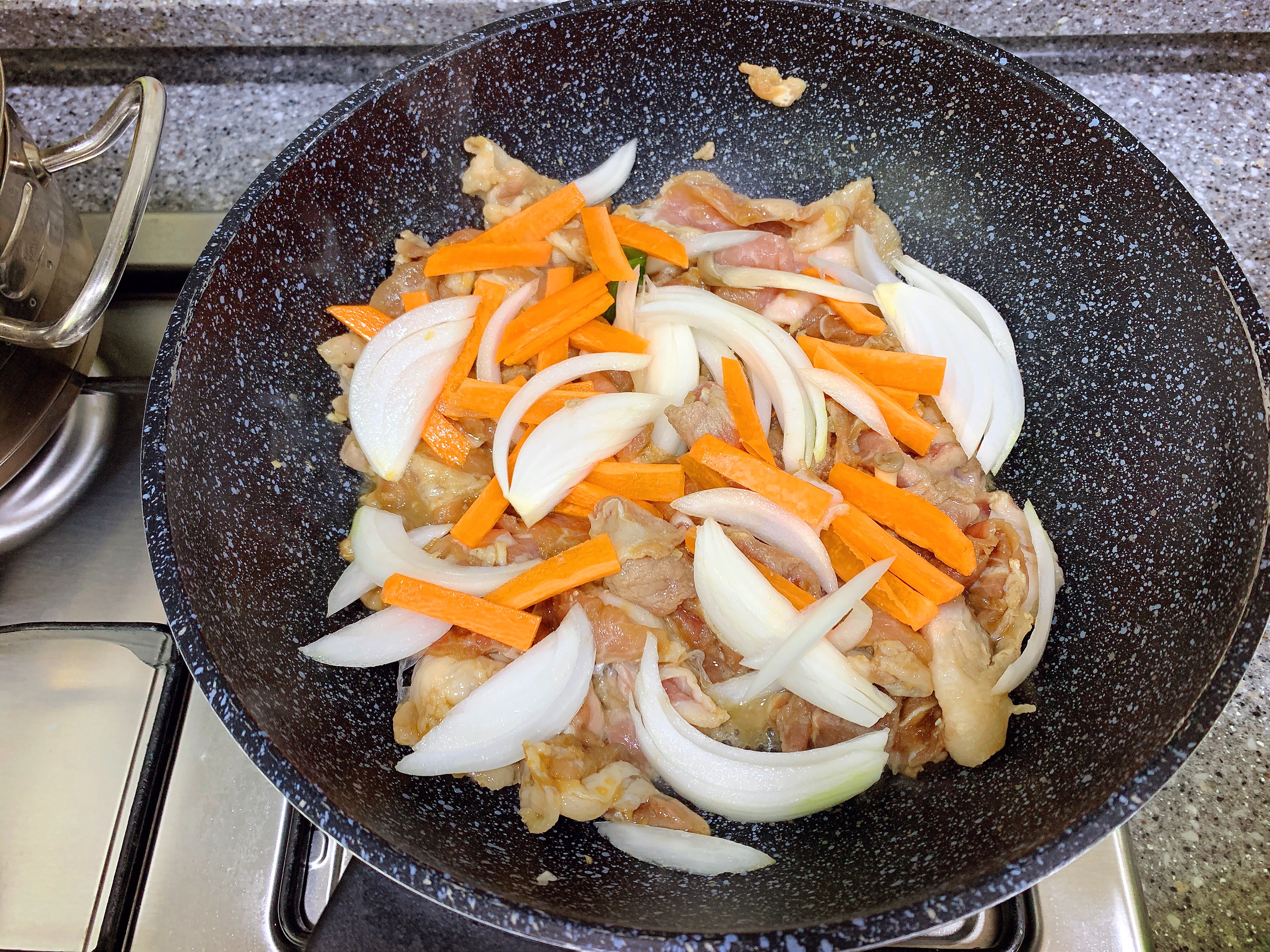 양파 반개, 참타리버섯 한뭉치, 당근 1/3개