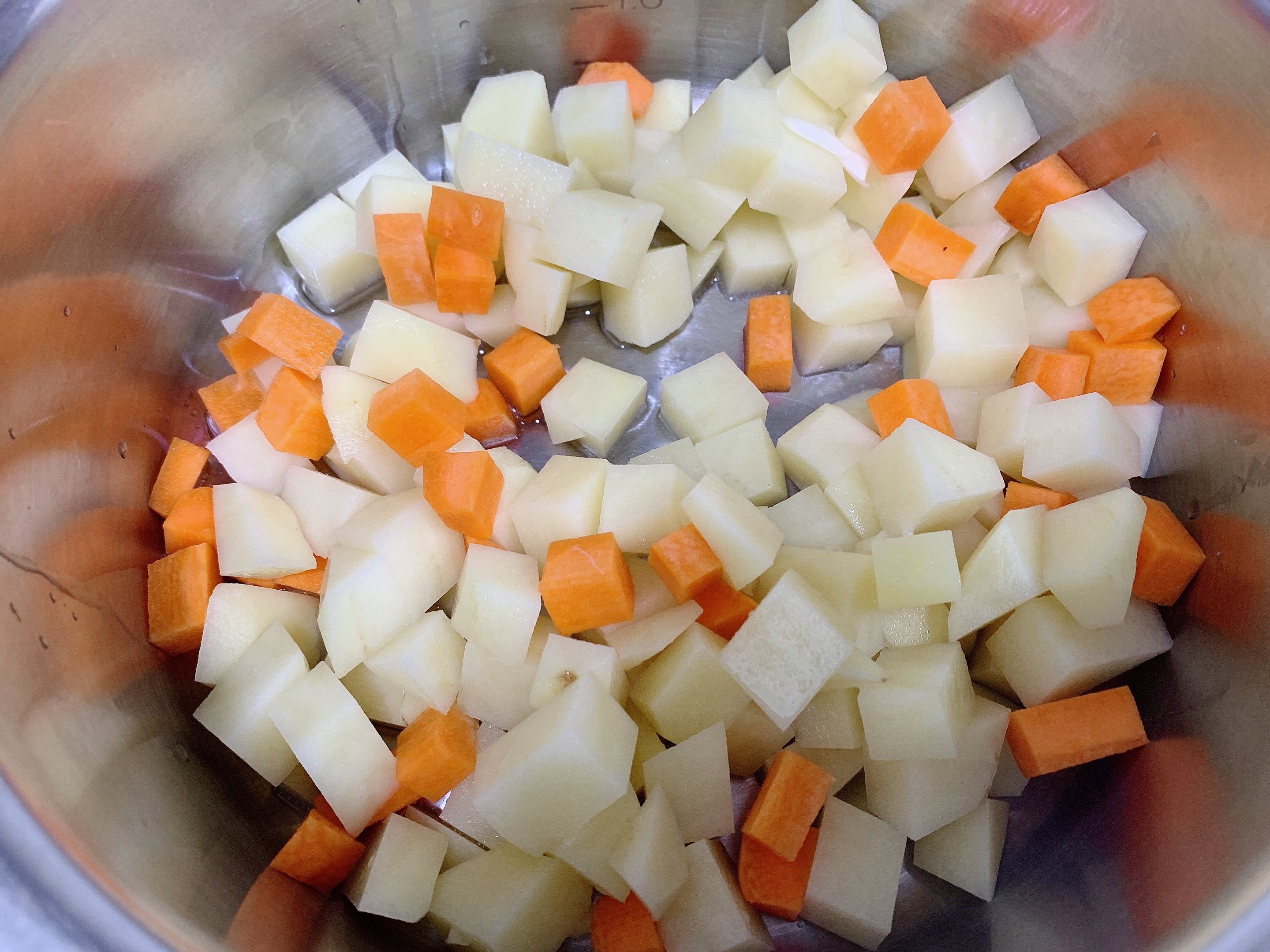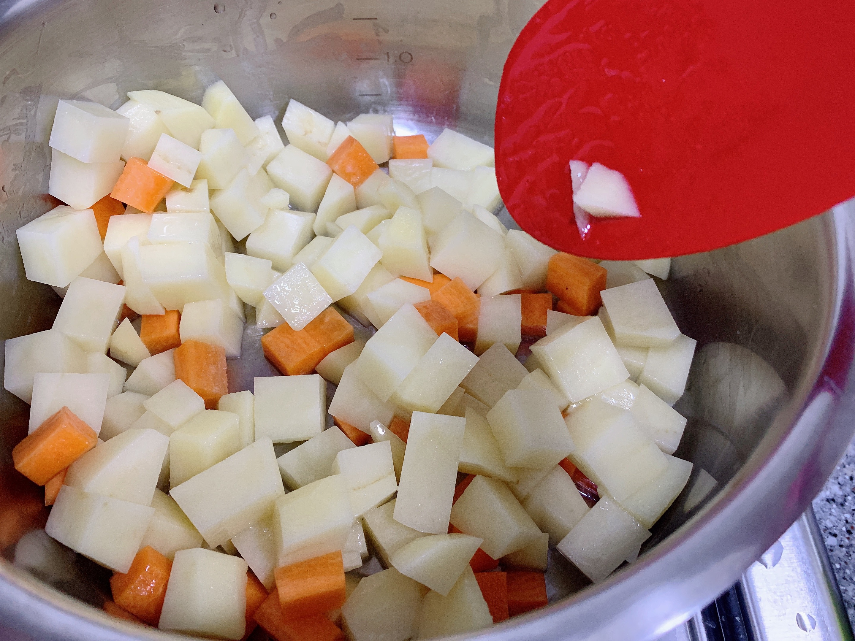 감자, 당근을 넣고 볶아주세요