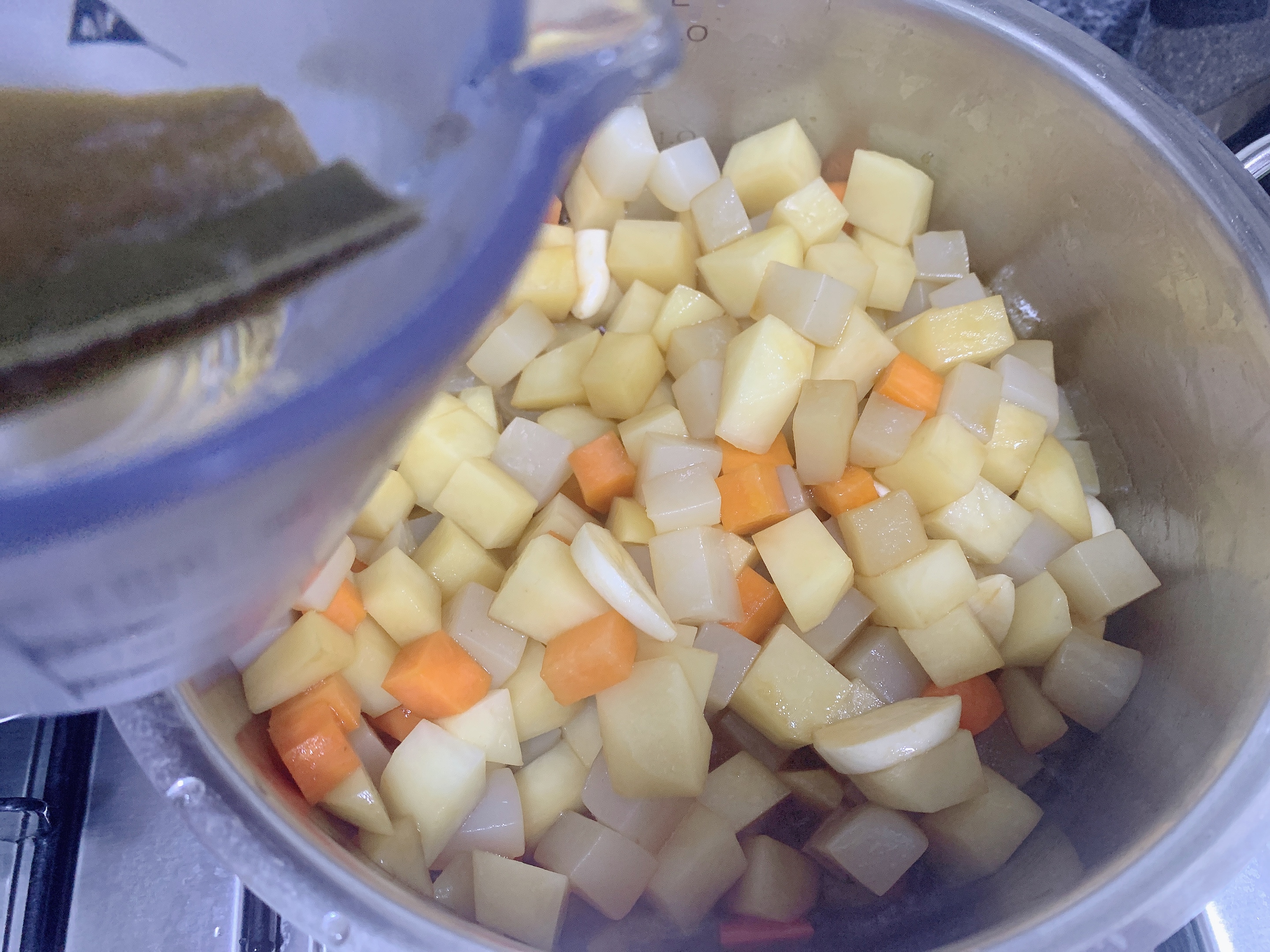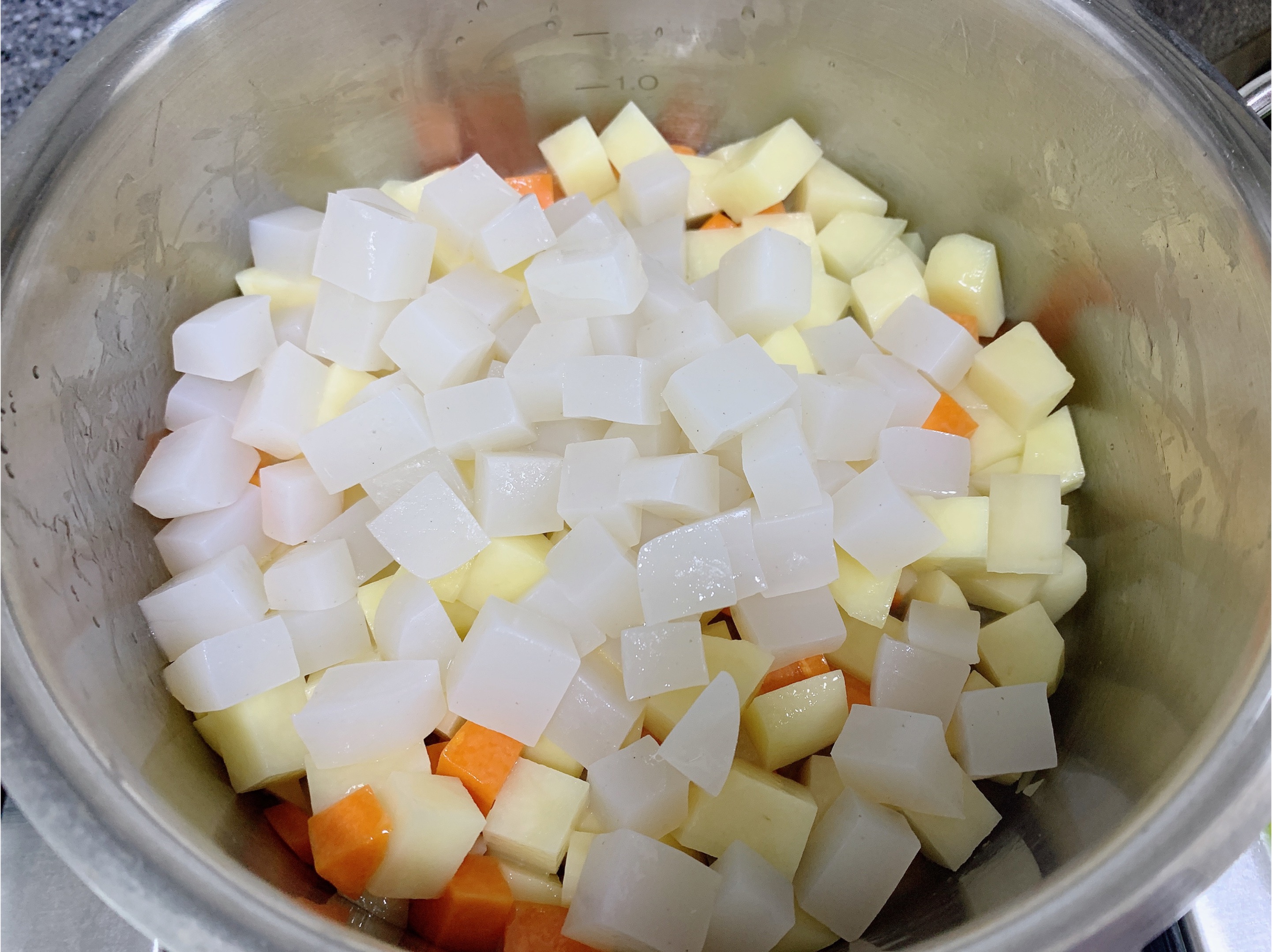 곤약과 감자 당근은 네모지게 깍둑썰기해주세요
