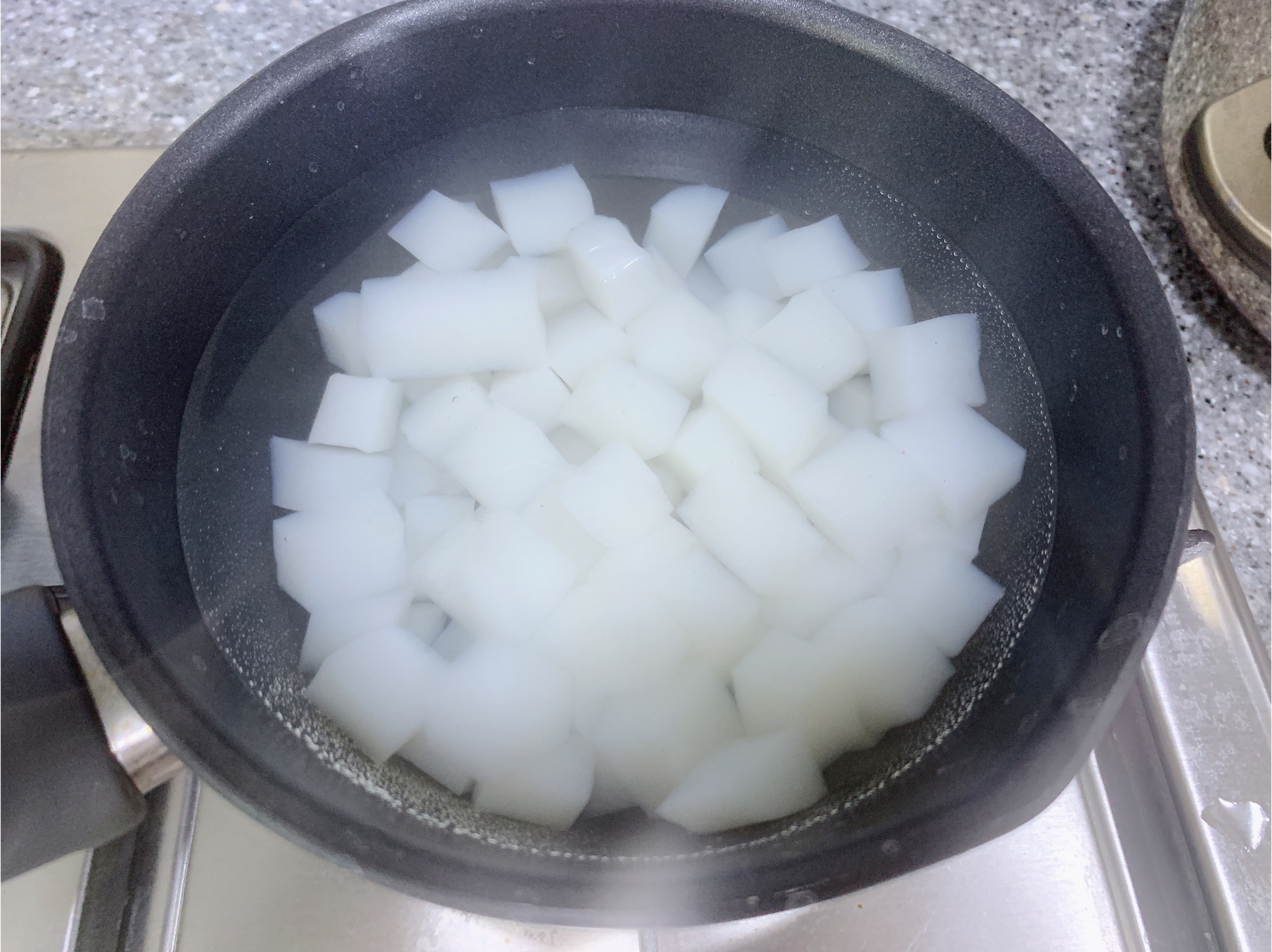 물이 끓으면 곤약을 넣고 1분정도 데쳐주세요