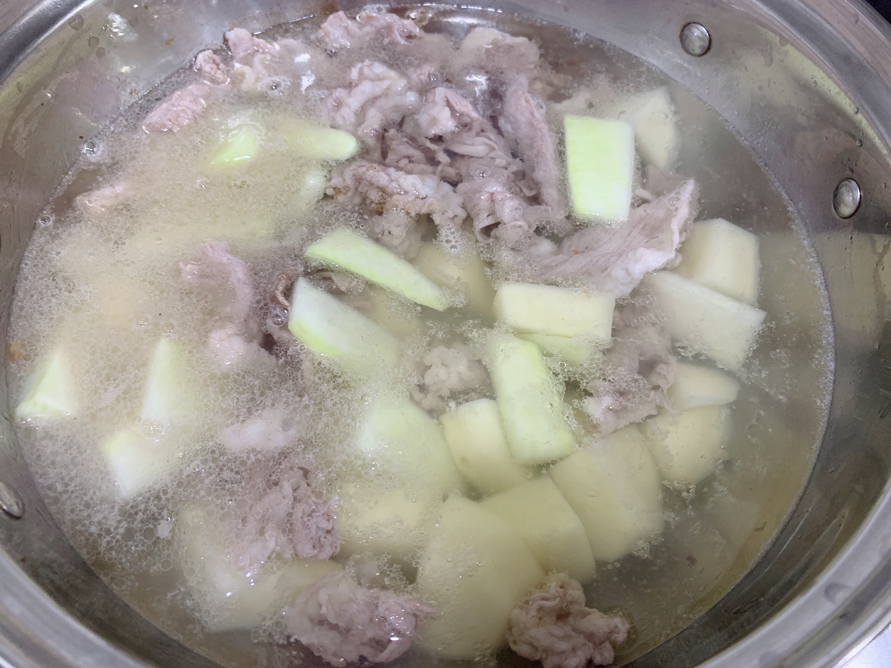 차돌박이 200g, 감자 1개, 작은 무 1/3개,