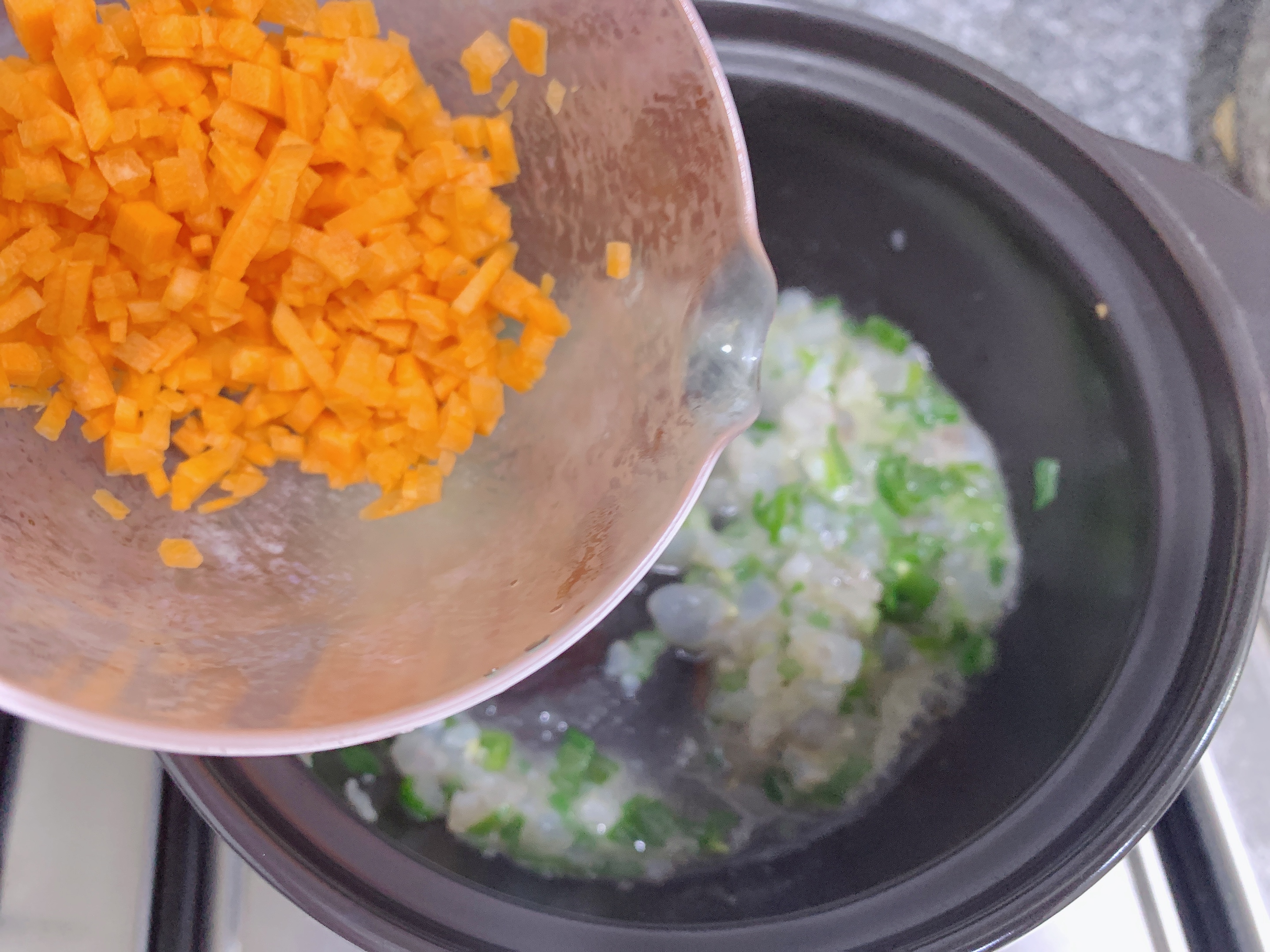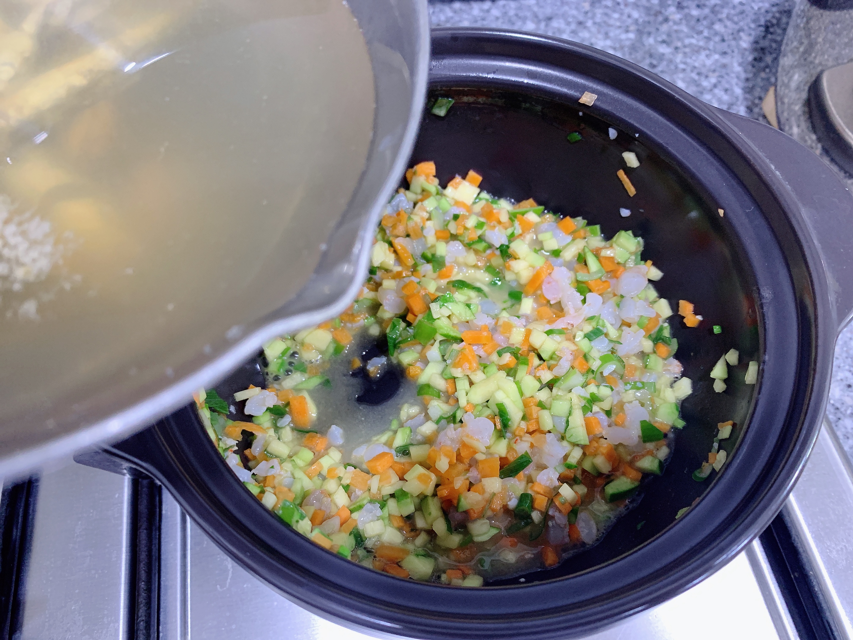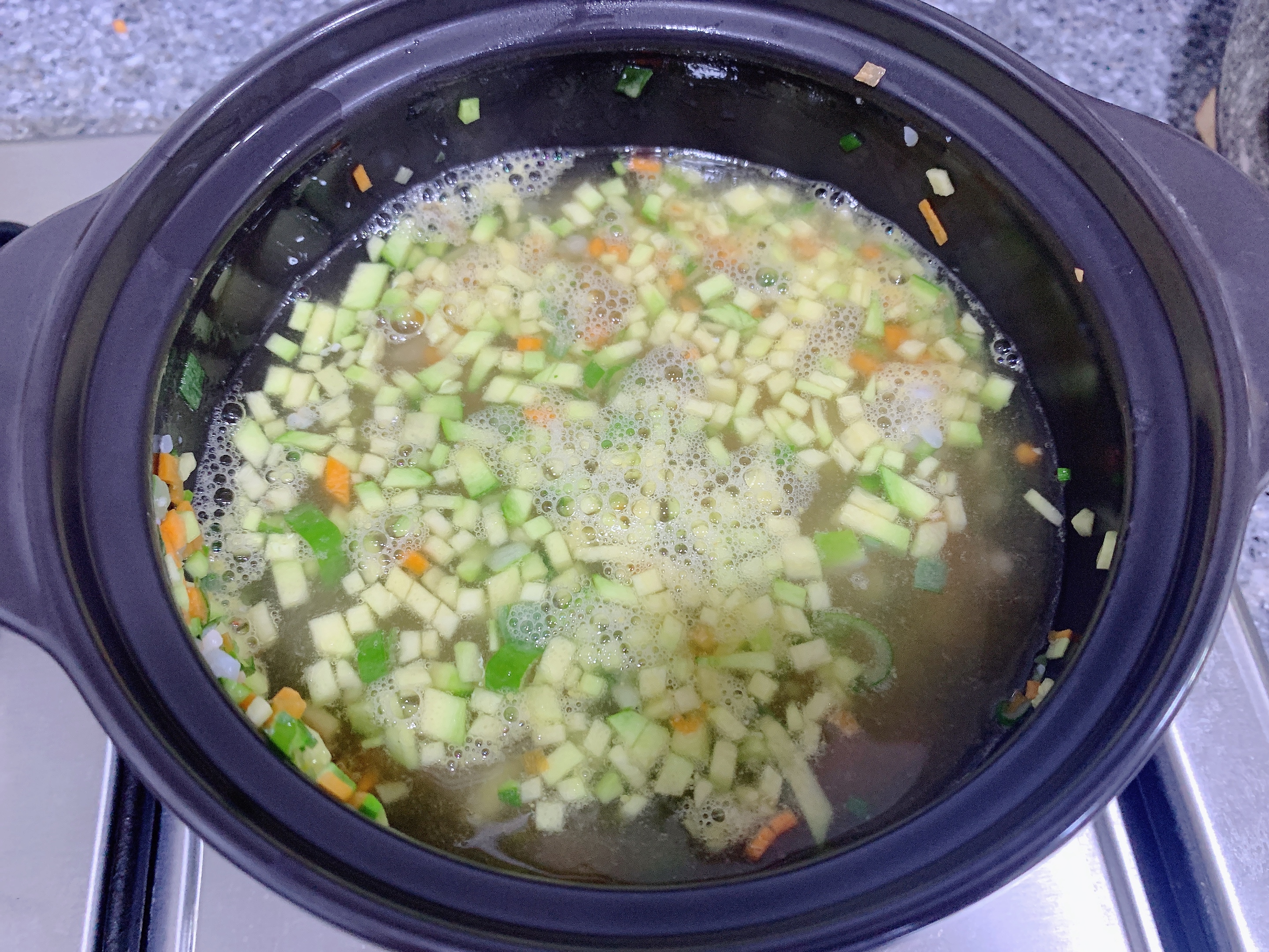 대파 1/2대, 당근 조금, 애호박 조금, 새우살 6마리,