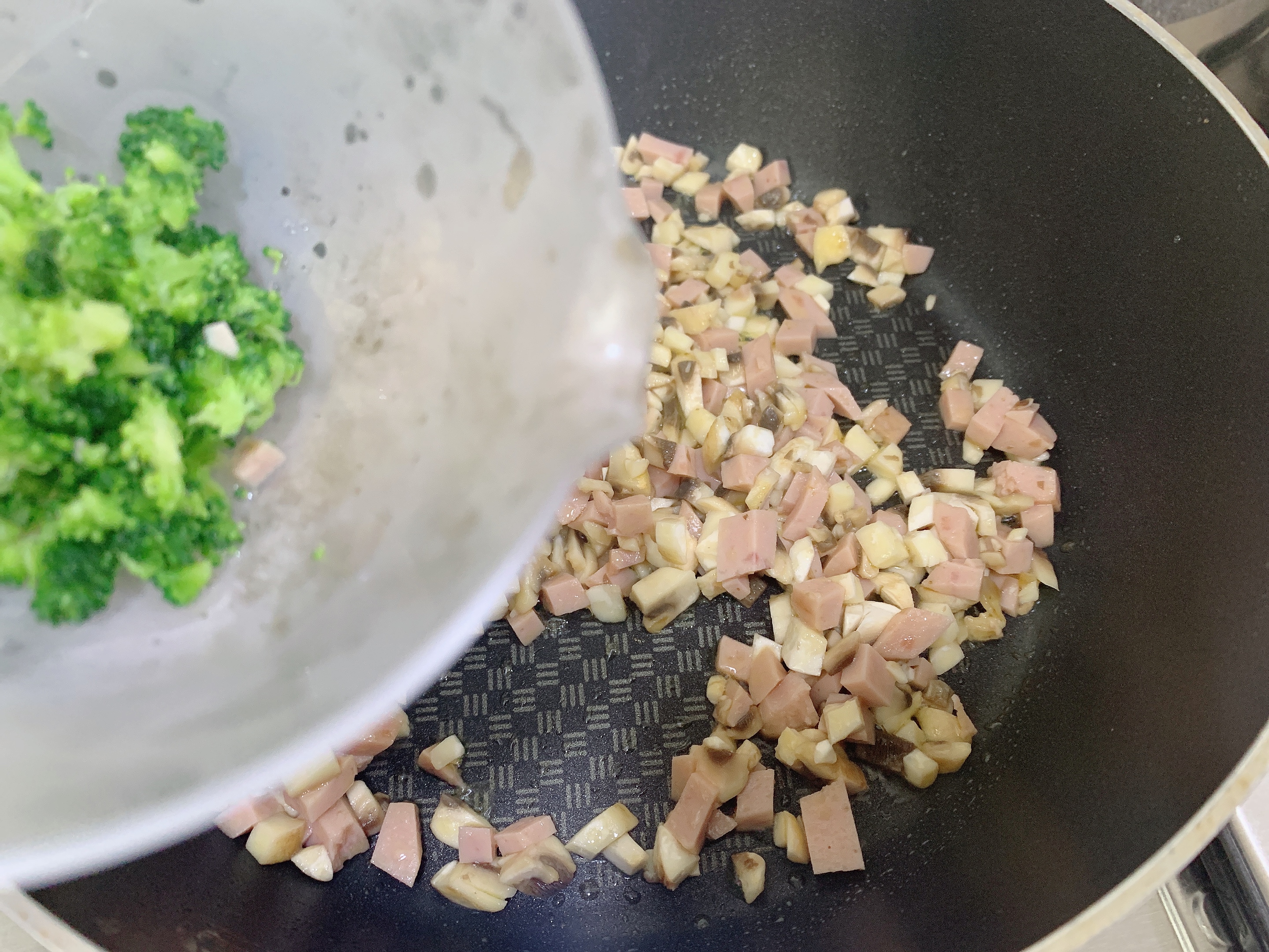 양송이가 숨이 죽으면 브로콜리도 넣고 볶아주세요