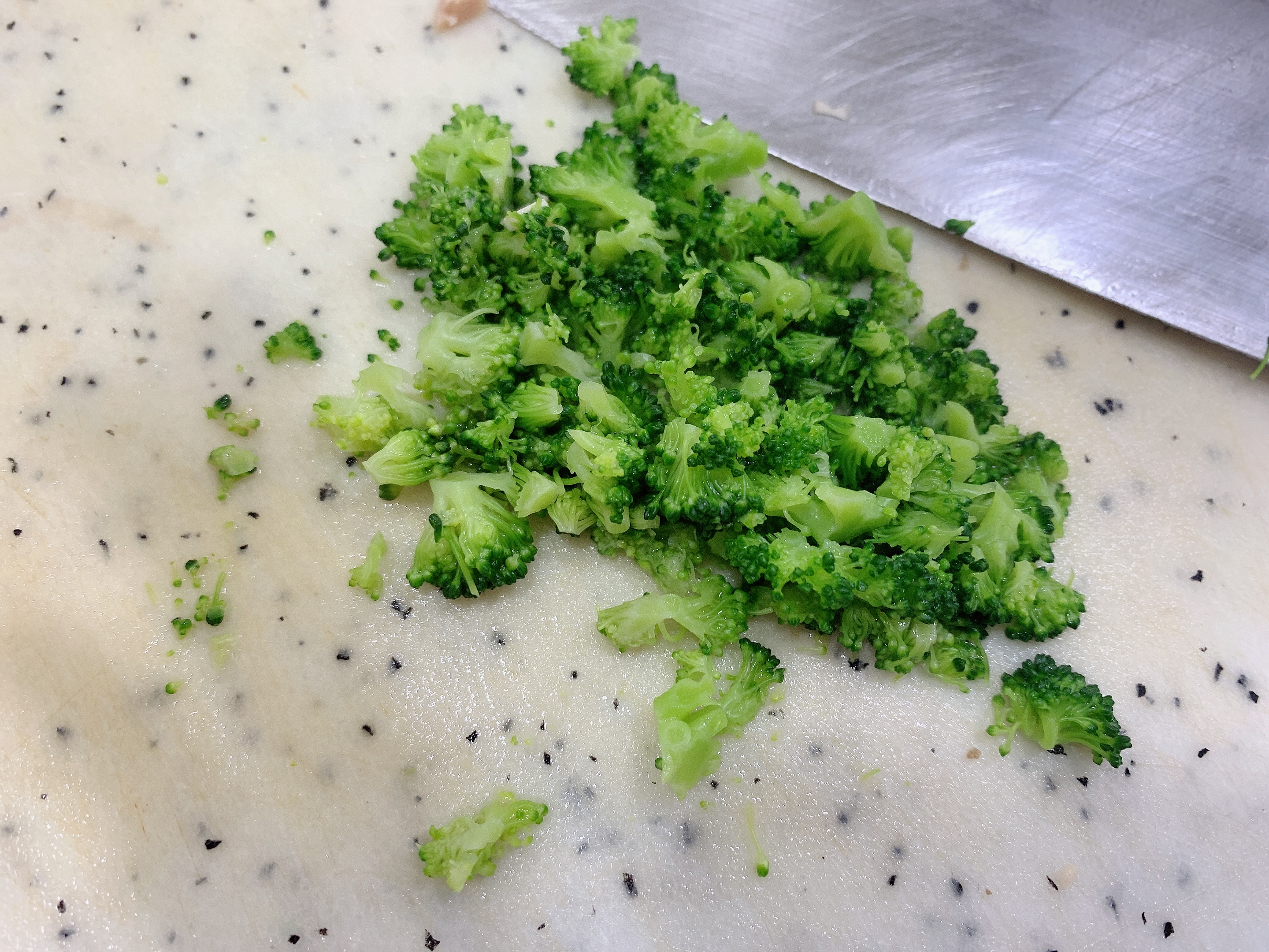 데쳐진 브로콜리도 잘게 다지세요