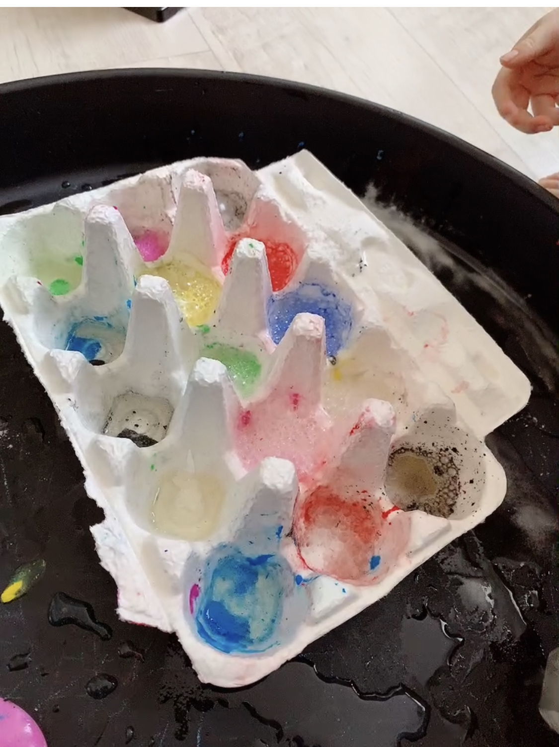 결국 달걀판으로 화산폭발 놀이를 하며