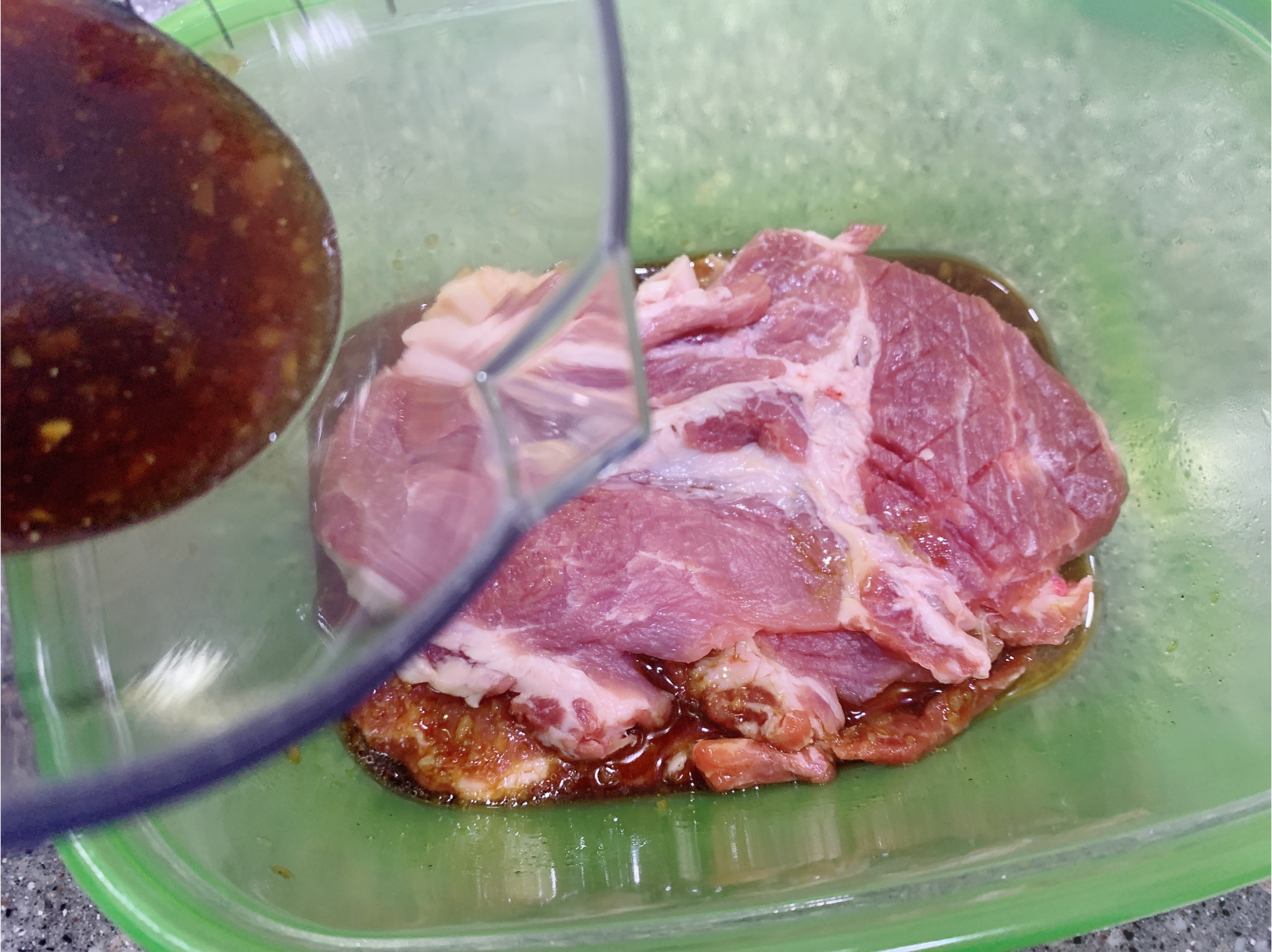 두께가 1cm 이상인 목살은 칼집을 앞뒤로 내주세요
