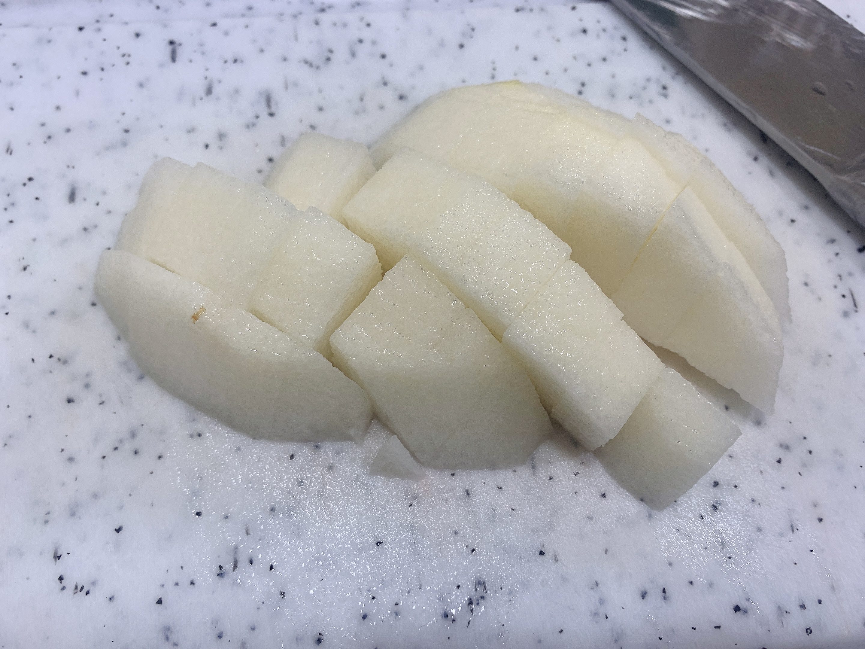 두께가 얇아서 칼로 두드리듯이 칼집을 내주었어요