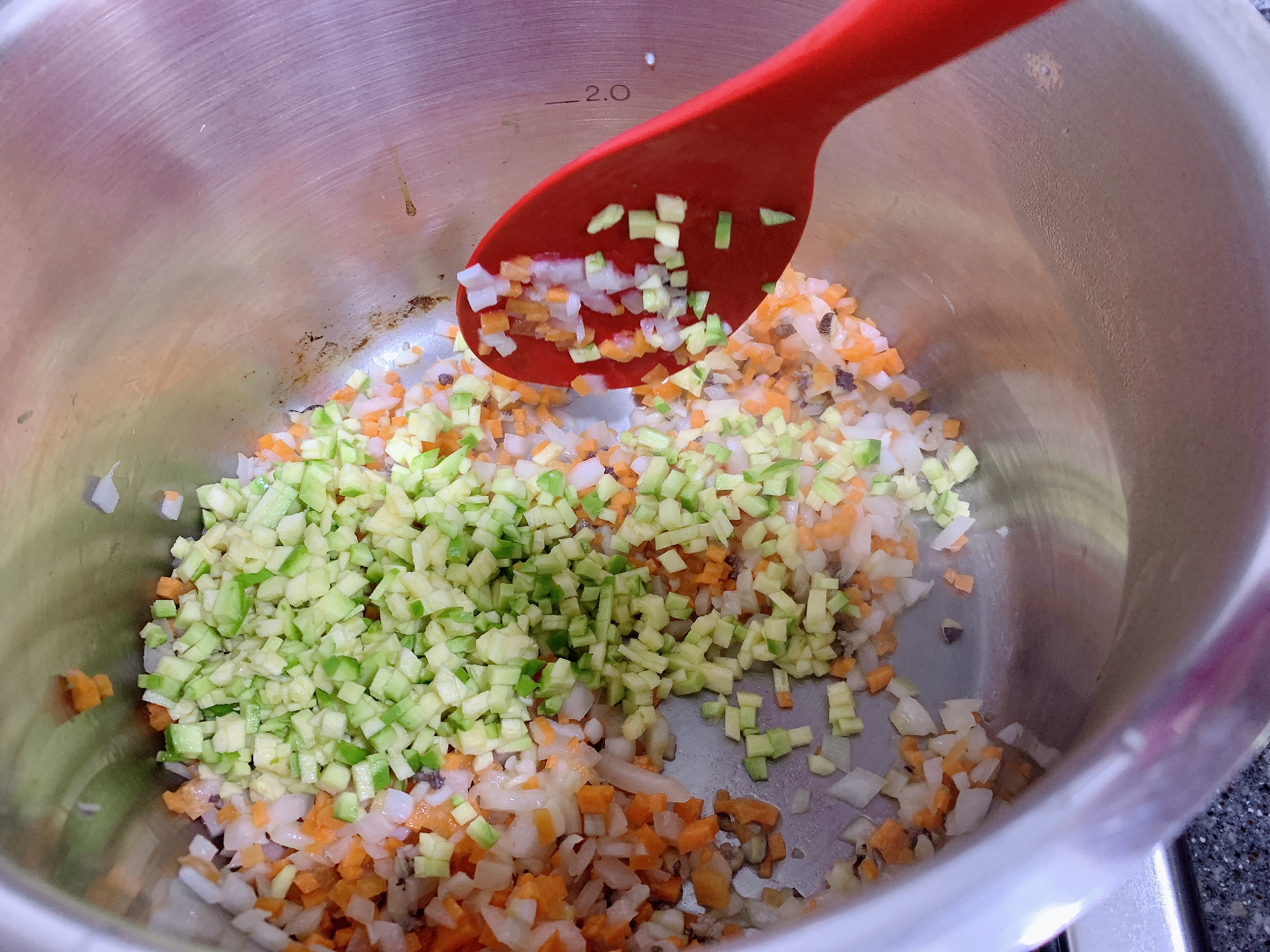 다음은 양파, 당근, 애호박을 차례로 넣어주세요