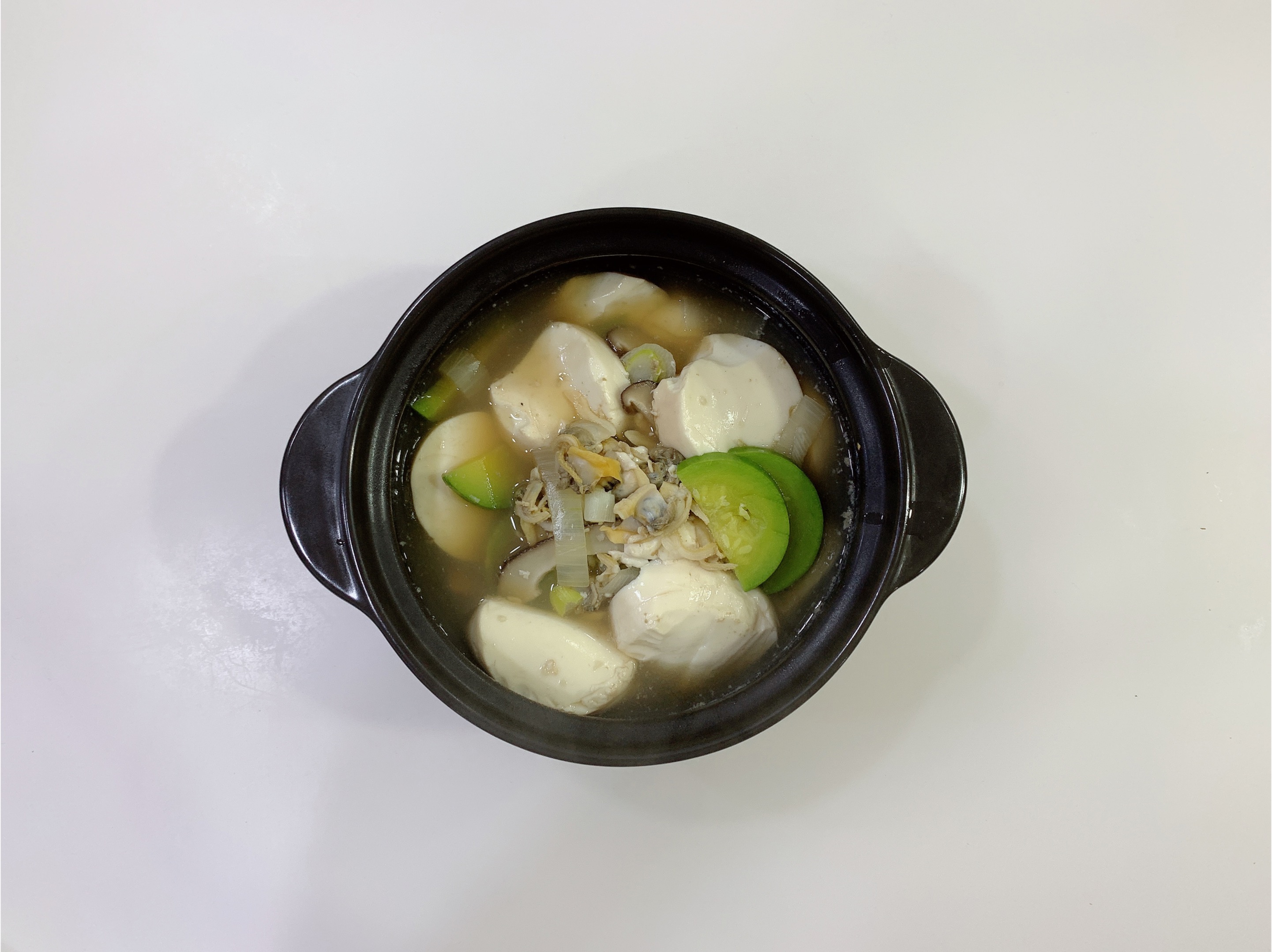 바지락살 200g, 순두부 한봉지, 애호박 1/2개,