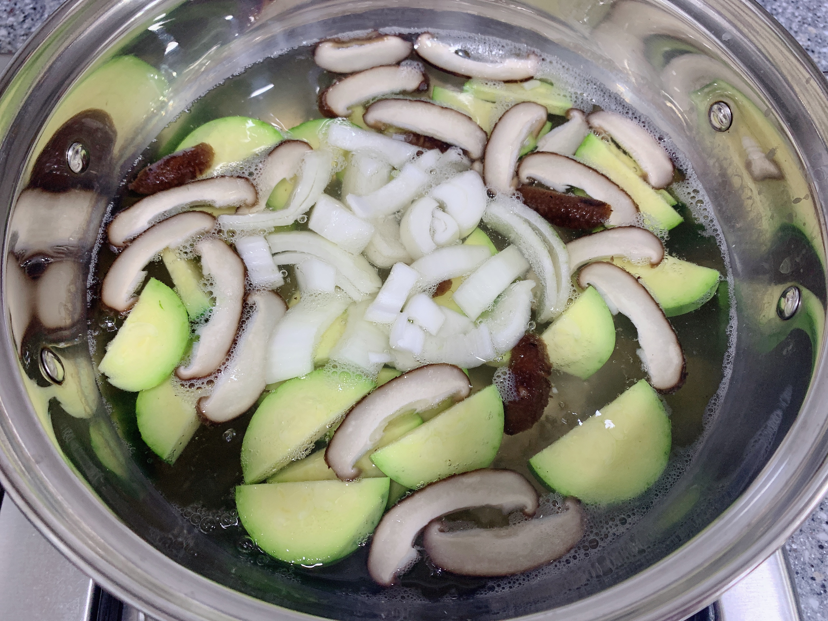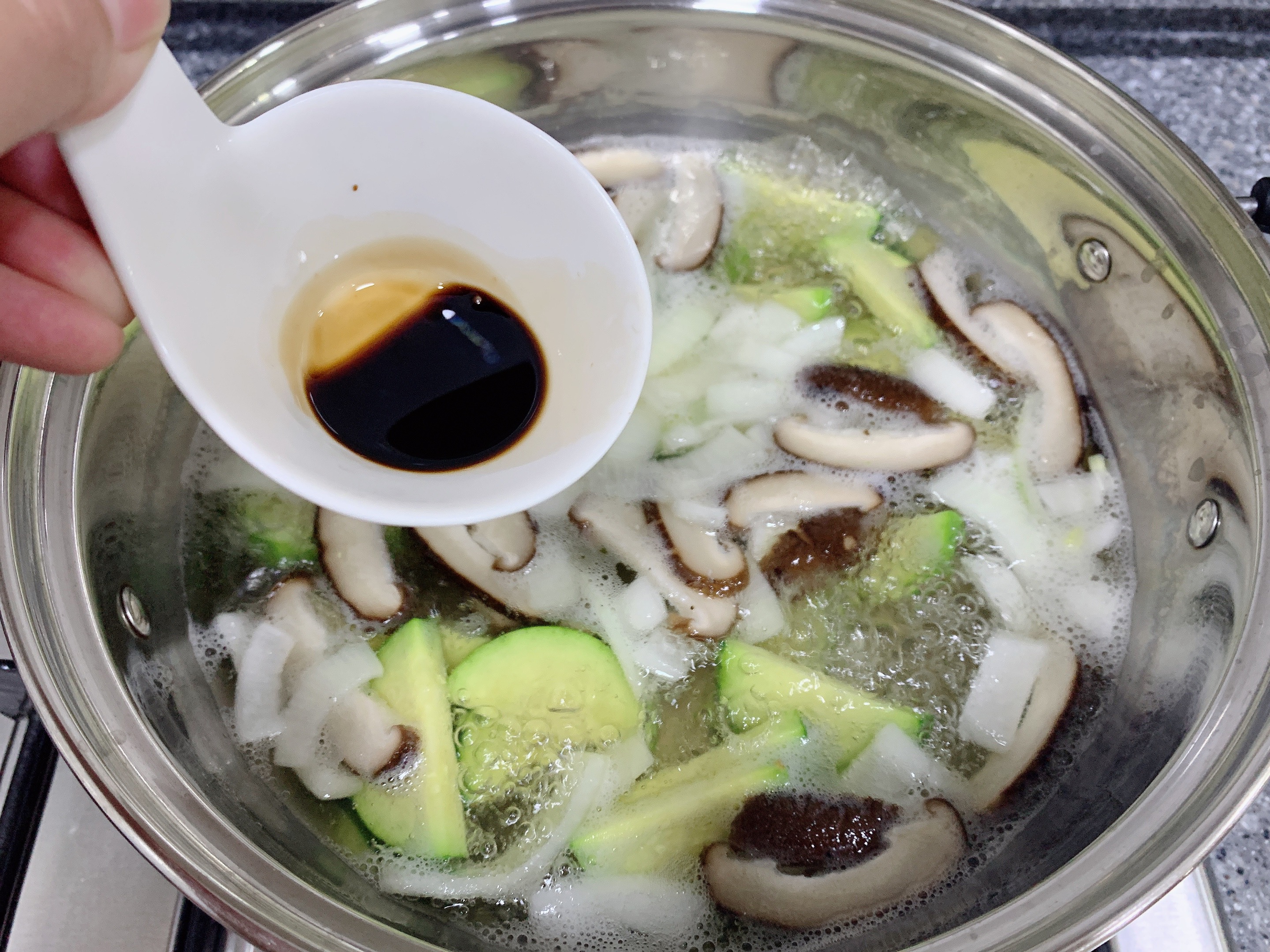 양파 1/4개, 표고버섯 2개, 대파 1대,