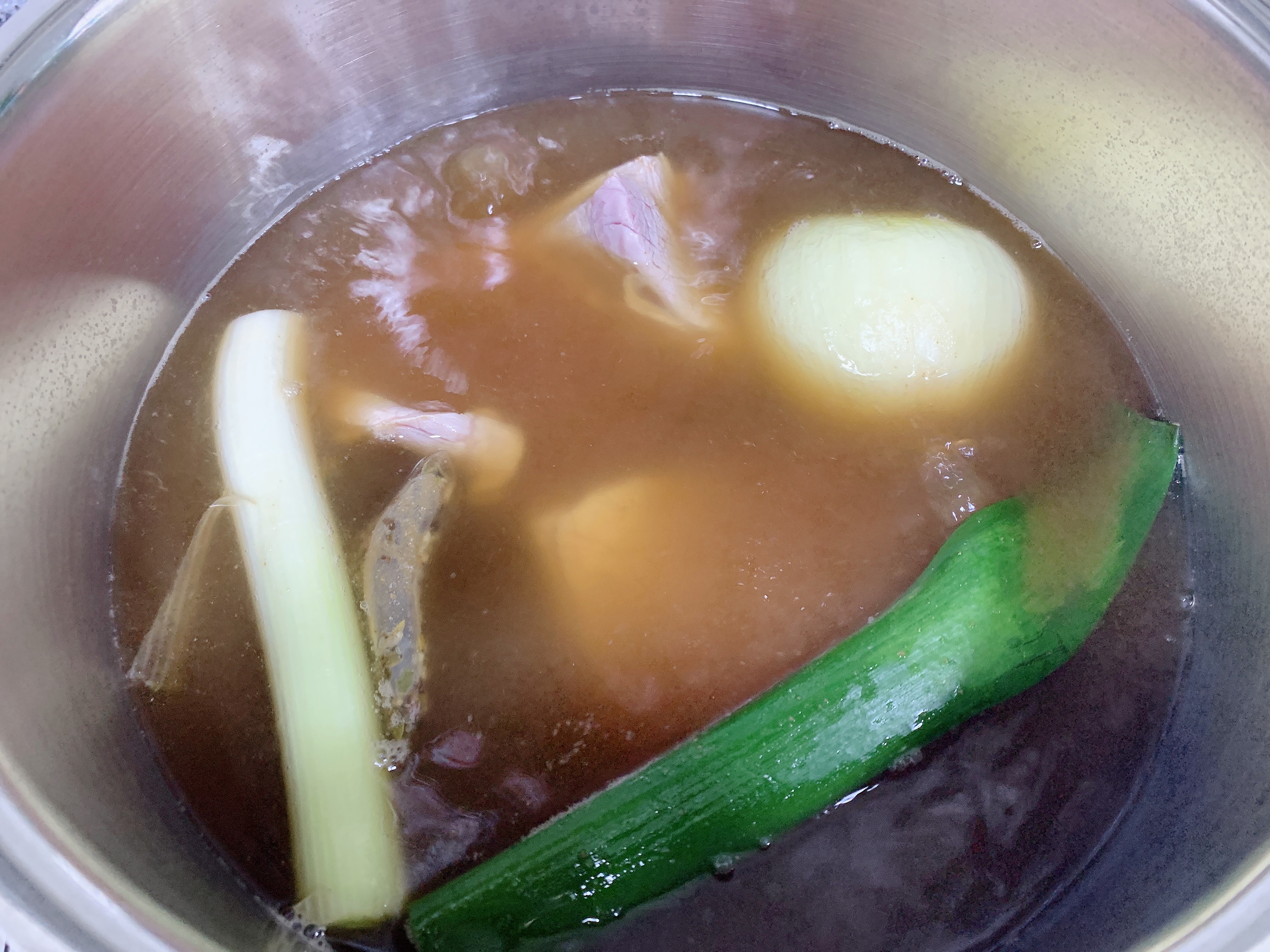 양파와 대파, 파뿌리, 티백을 넣고 끓입니다